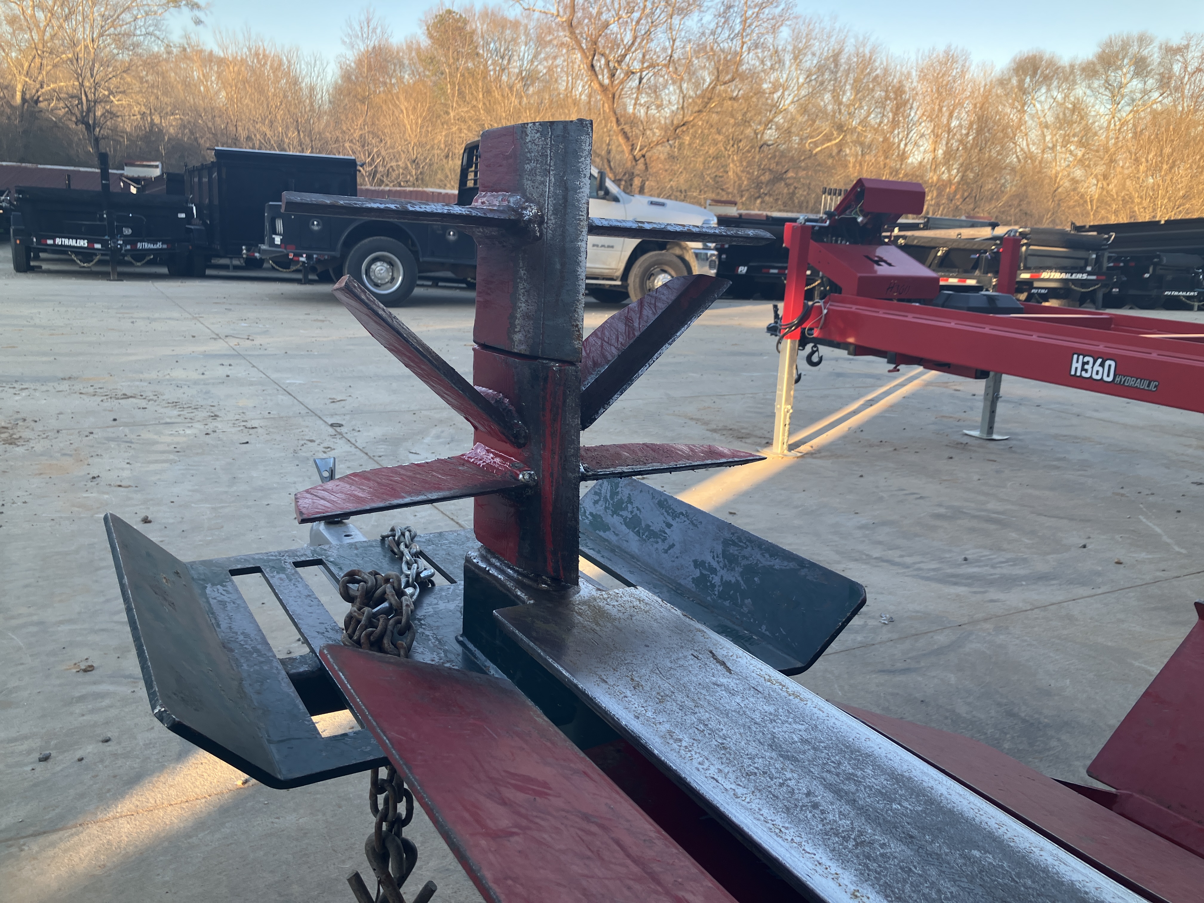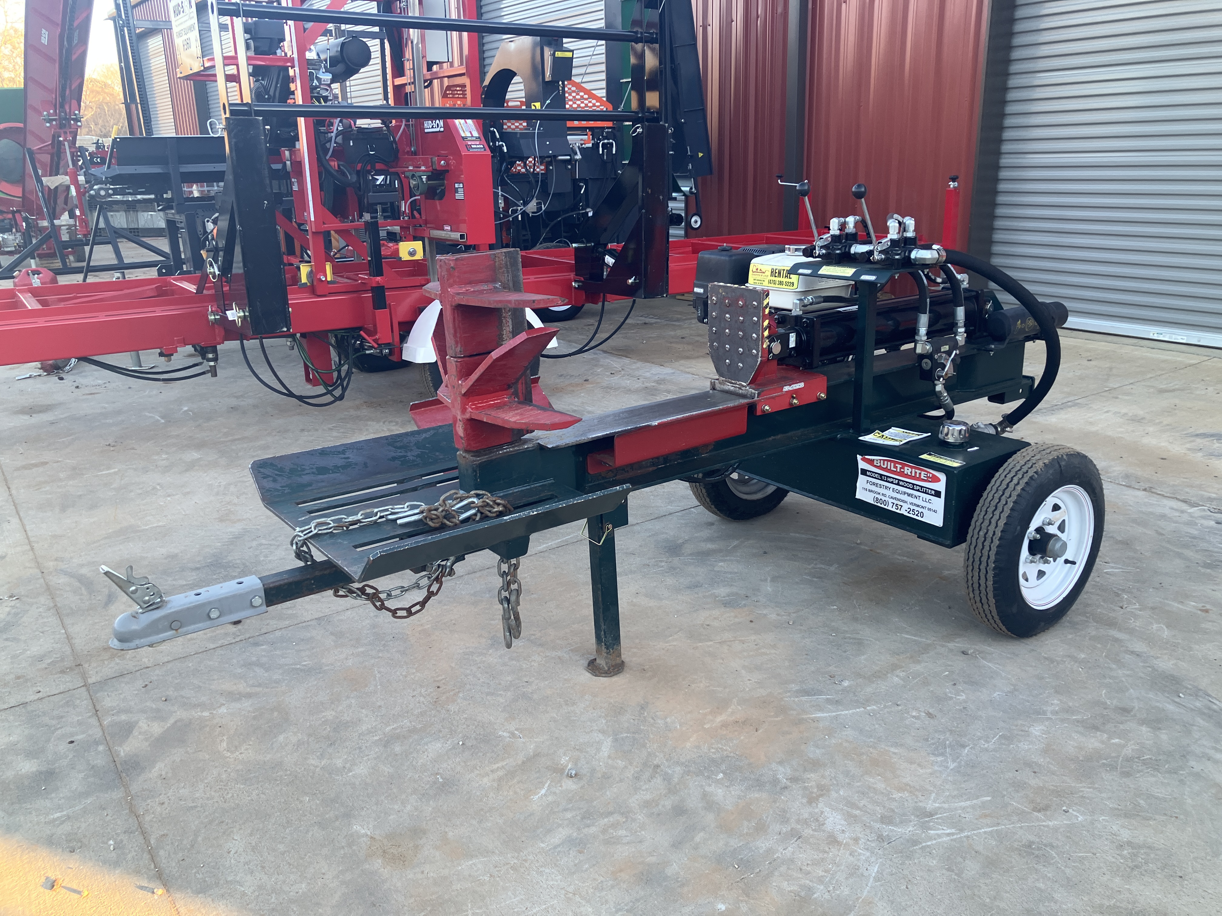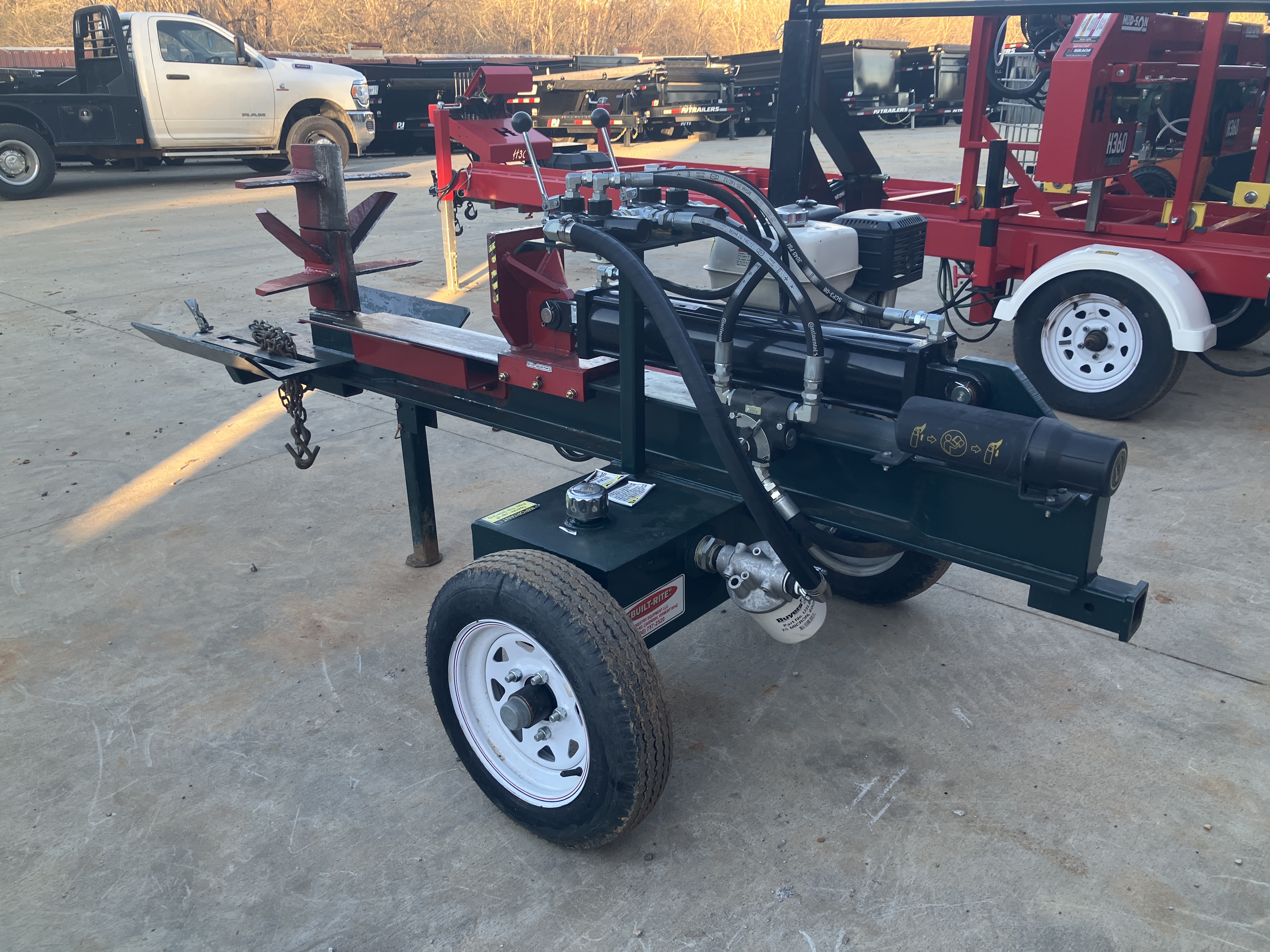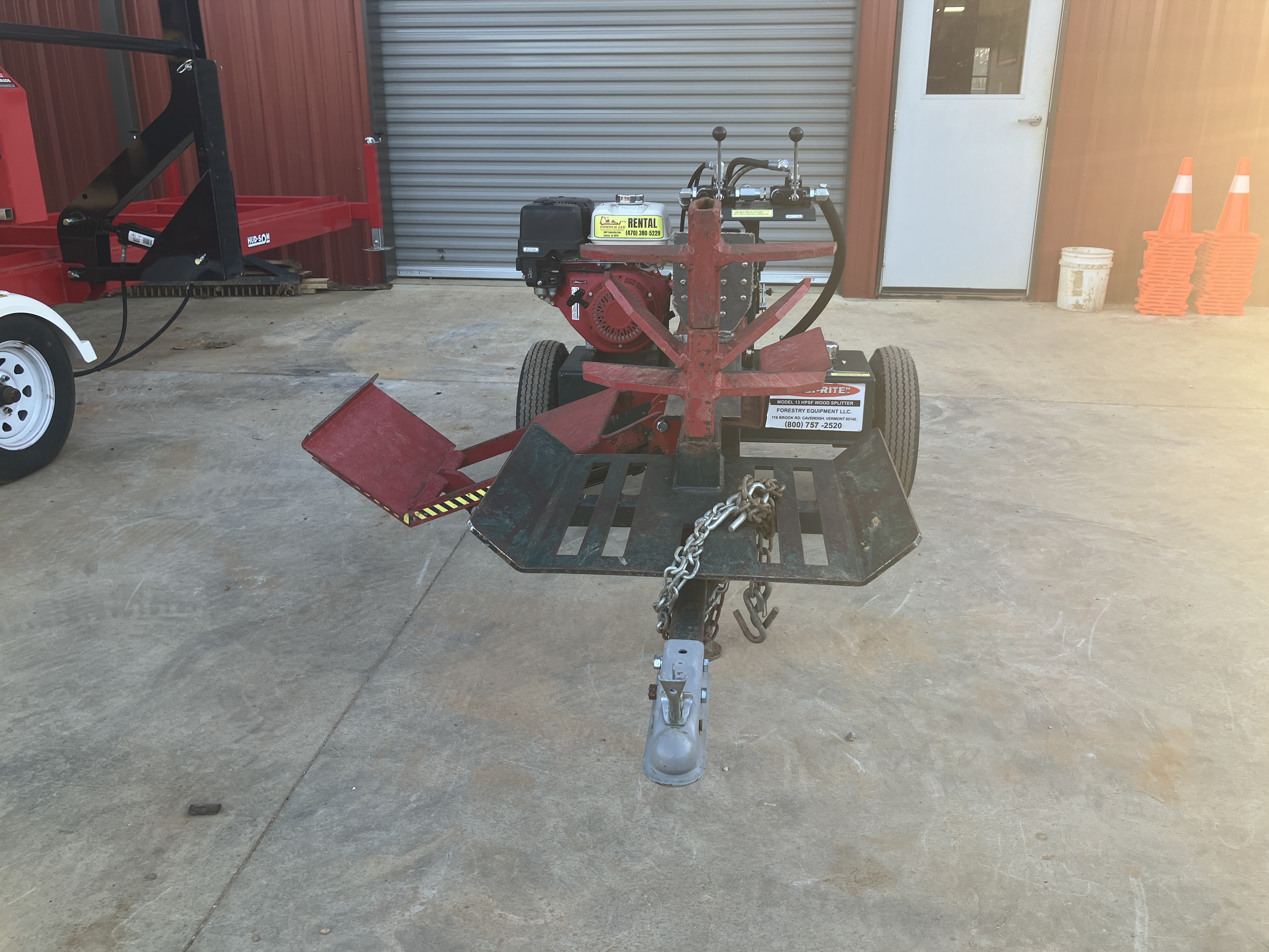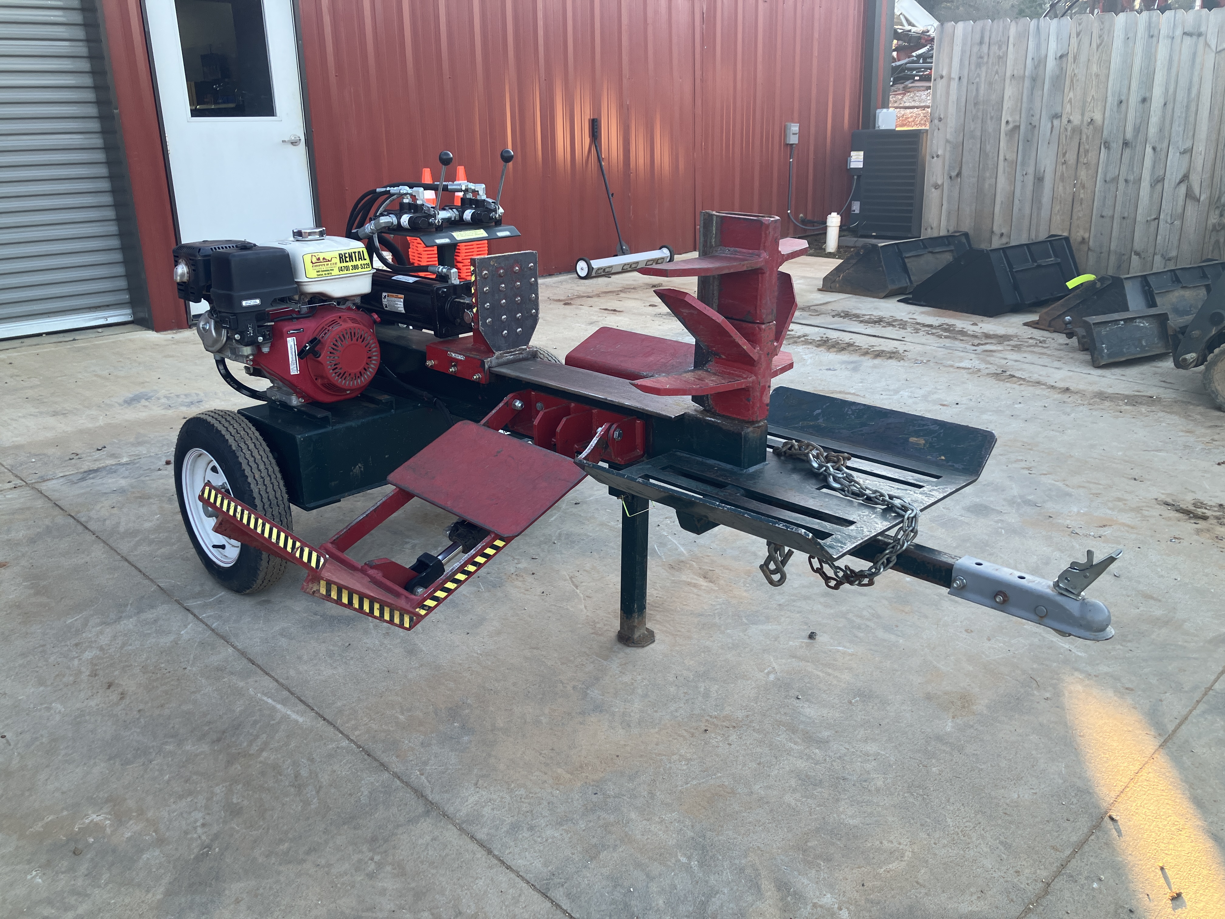 13HP Honda Engine 22 GPM Pump Includes Hydraulic Log Lift and Table Grate. Upgraded 4.5 Cylinder. Innovative design towable from either end so can back up to woodpile. Hitch is quickly removed for anti-theft.