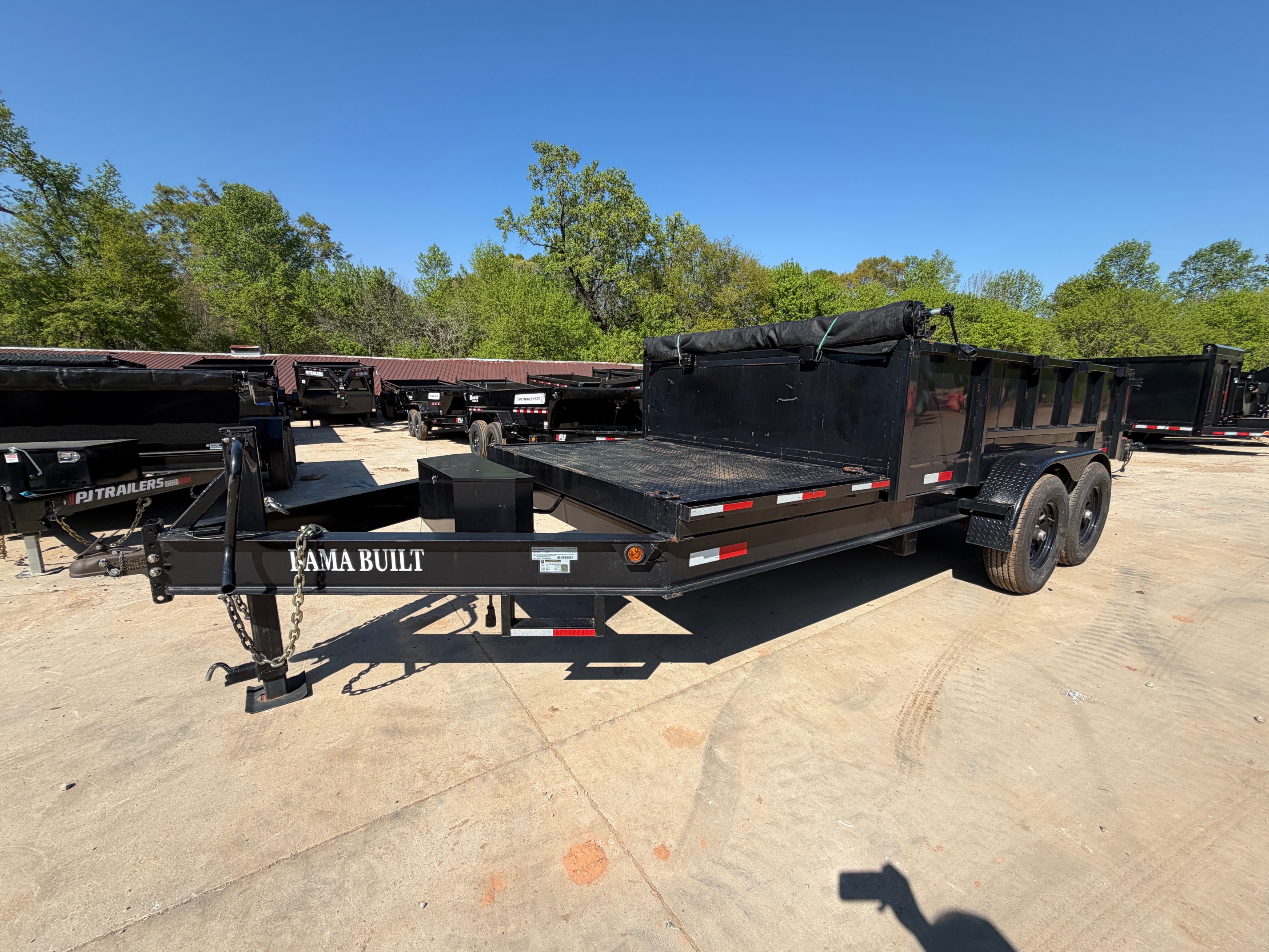 2024 Bama Built Used as is 7x16 14K Hybrid Dump Trailer – 12’ Dump + 4’ Flat, 2’ Sides, 8” I-Beam, Dual Cylinder, Barn Door, Ramps, Tarp - D14K7162B-HYBRID