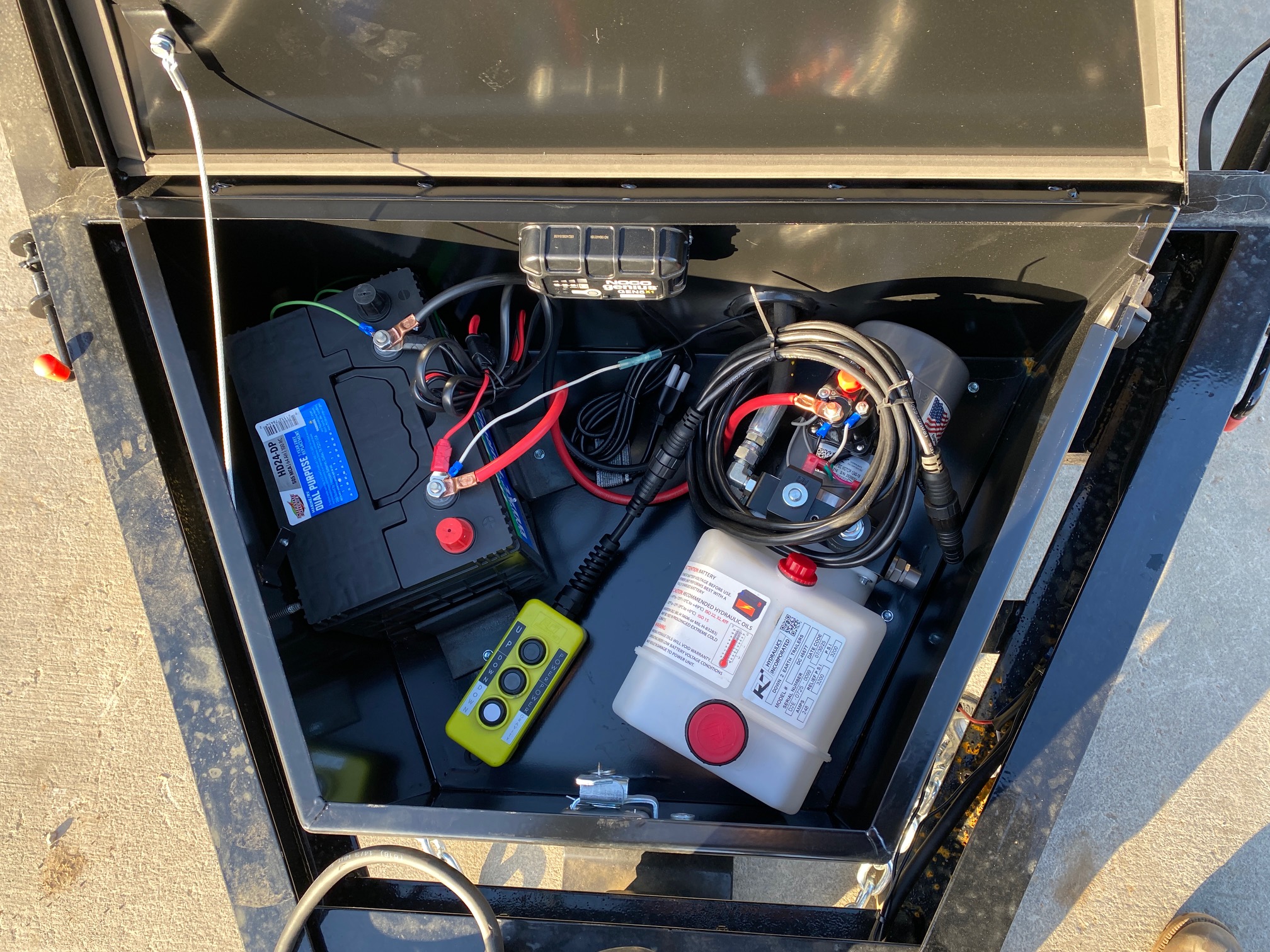 Full power hydraulic tilt with battery and pump, entire 20 foot deck tilts