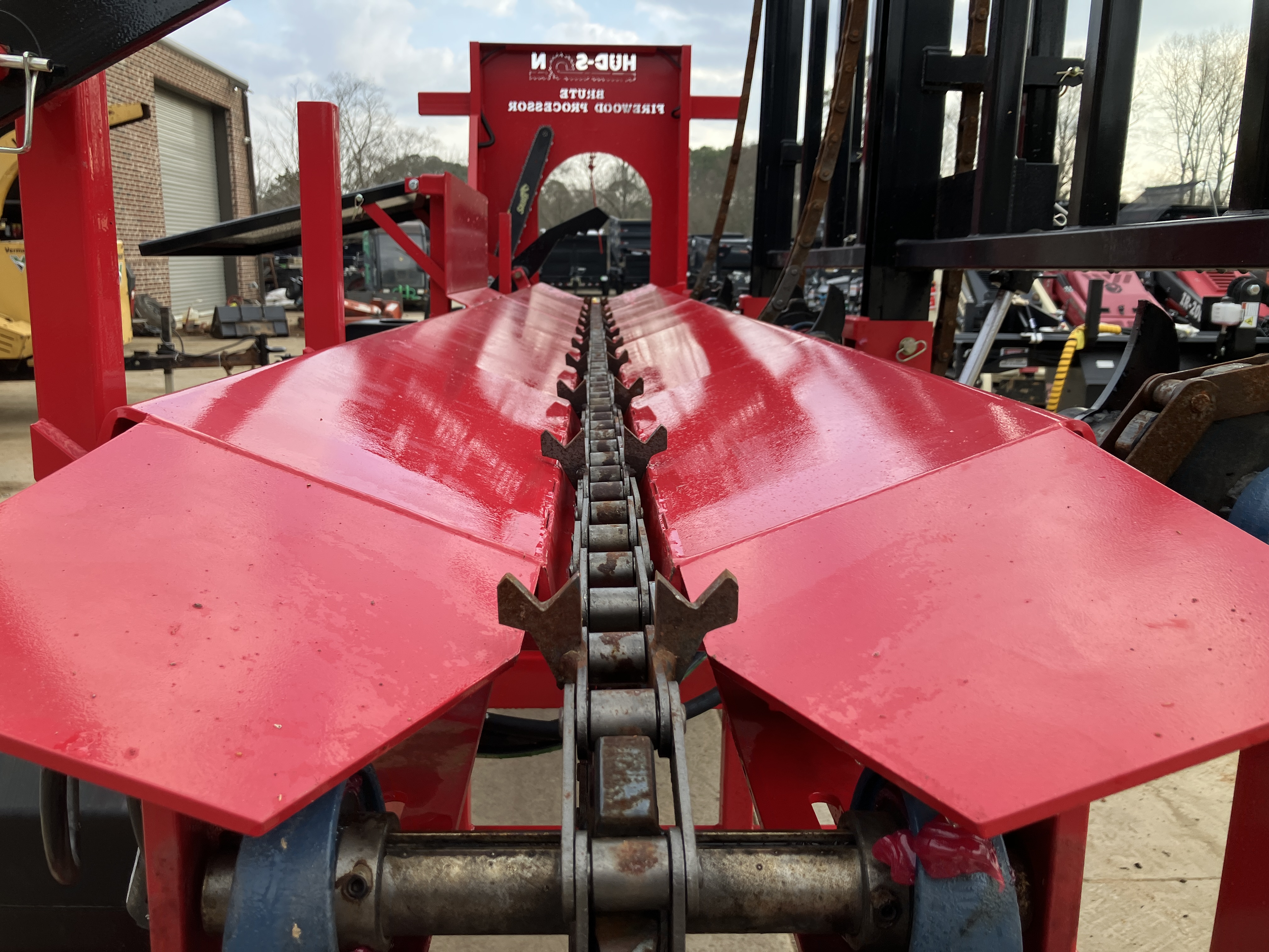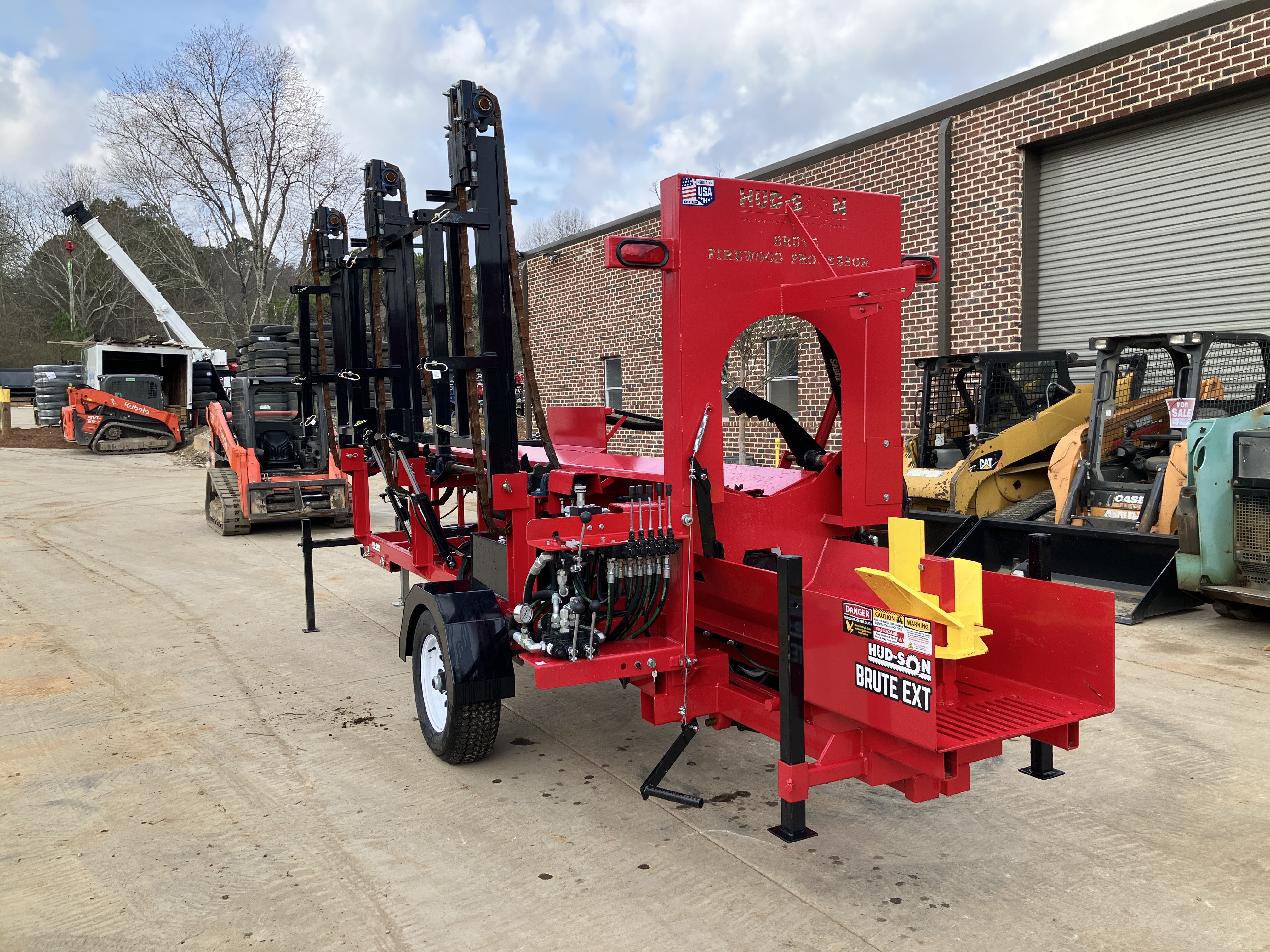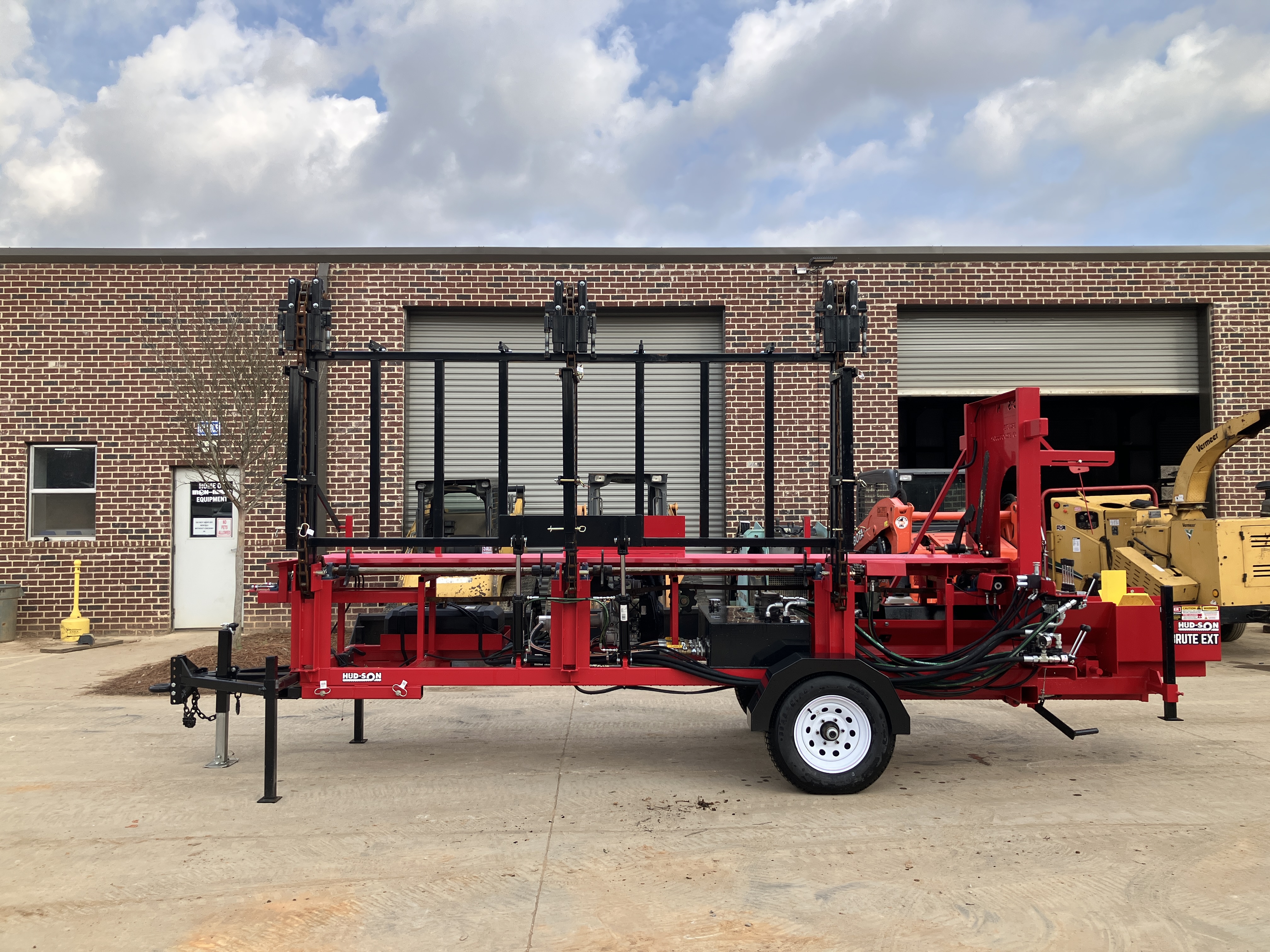 The Hud-Son Brute Firewood processor EXT for firewood production up to 20′ log lengths. The 22 gal/min pump runs the splitting cylinder and chainsaw motor, the 4 gal/min pump runs the feed decks. This allows you to feed the next cut in while the splitter is in the return mode which speeds up the process greatly. The bar oil tank is electronically activated to only oil the bar during cutting to reduce operation cost and extend bar life. Features include 35 HP Engine w/electric start (optional 40hp EFI), hydraulic log loader, hydraulic log feed, hydraulic log clamp, hydraulic saw, 20 inch diameter log capacity, 24 inch splitter w/auto cycle, 8 second cycle time, hydraulically adjustable 4-way wedge, dual hydraulic pumps, large reservoir tank, 2 inch trailer hitch, torsion axle, highway towable, built in hydraulic pressure gauge & hour meter, and an automatic oiler.