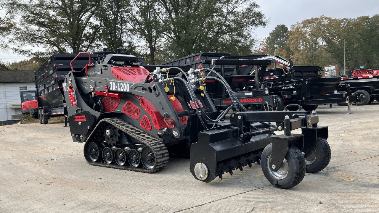 ## Iron Rhino IR1200 Narrow Track Mini Skid Steer with 4 Hose Bidirectional Power Rake Bundle