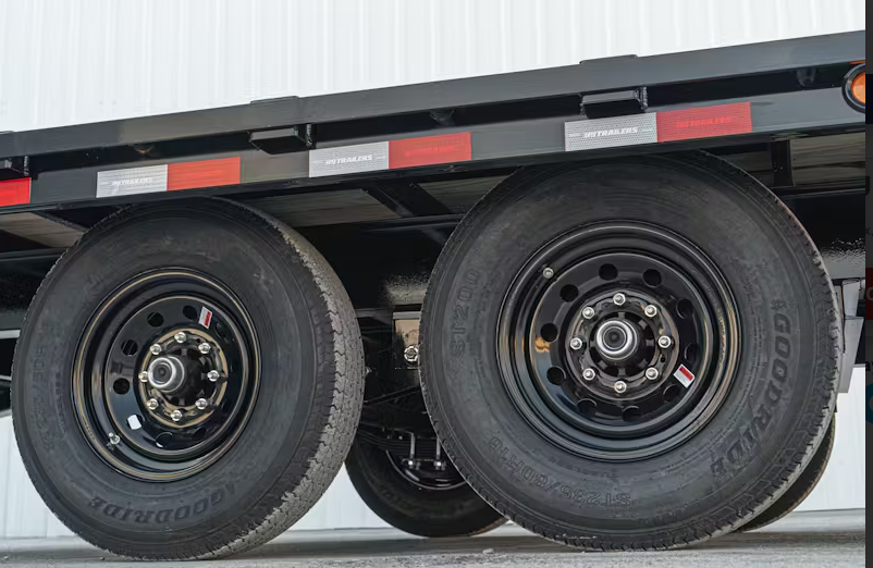### 14000 lb. G.V.W.R. with two 7000 lb. axles with 5 year axle warranty. Can be re-rated for DOT purposes if you wish to have a heavy built trailer but want lower G.V.W.R so combination under 26,000 lbs. This only applies to 14k trailers when the GVW of the pulling vehicle is over 12,000.