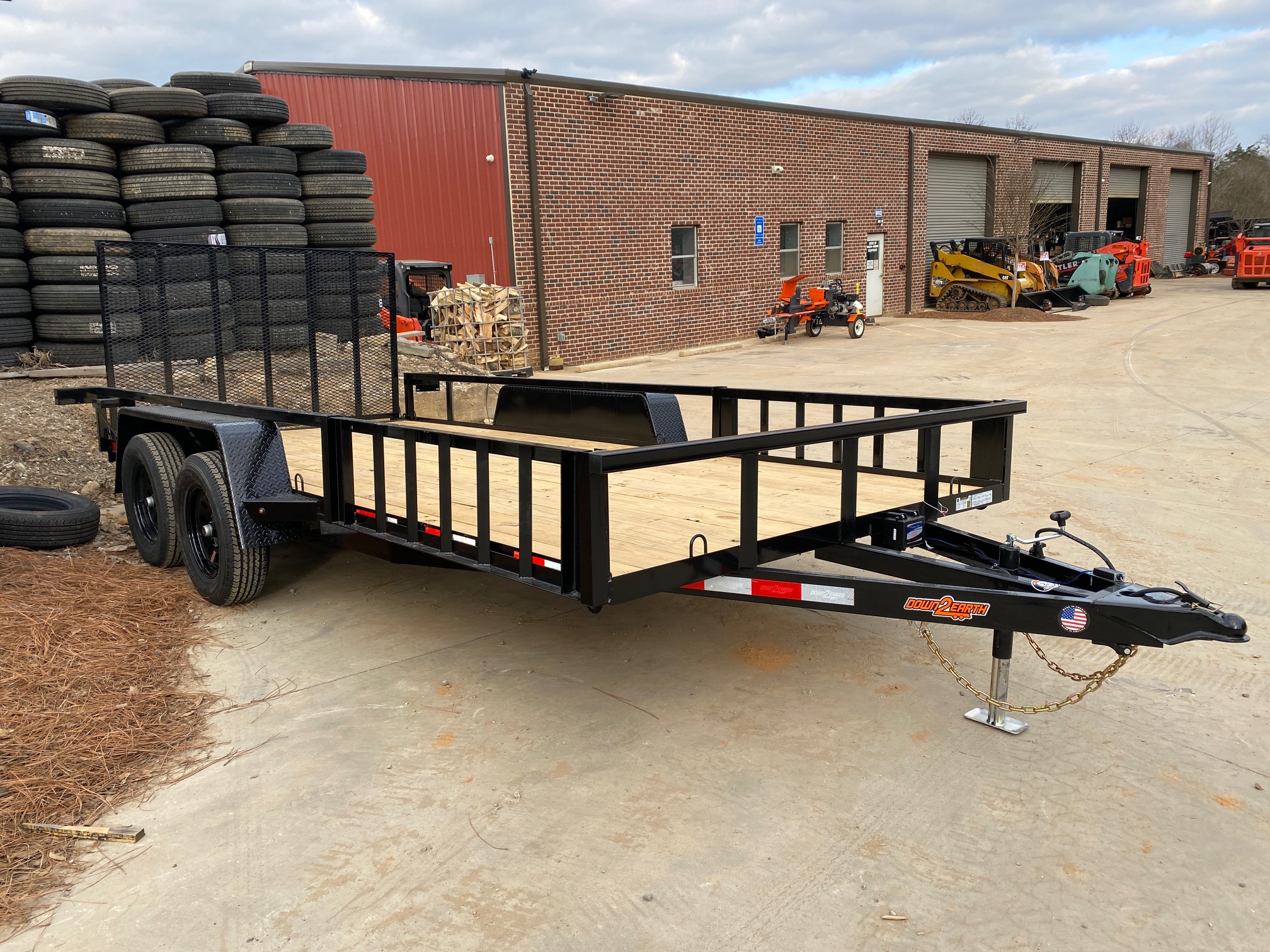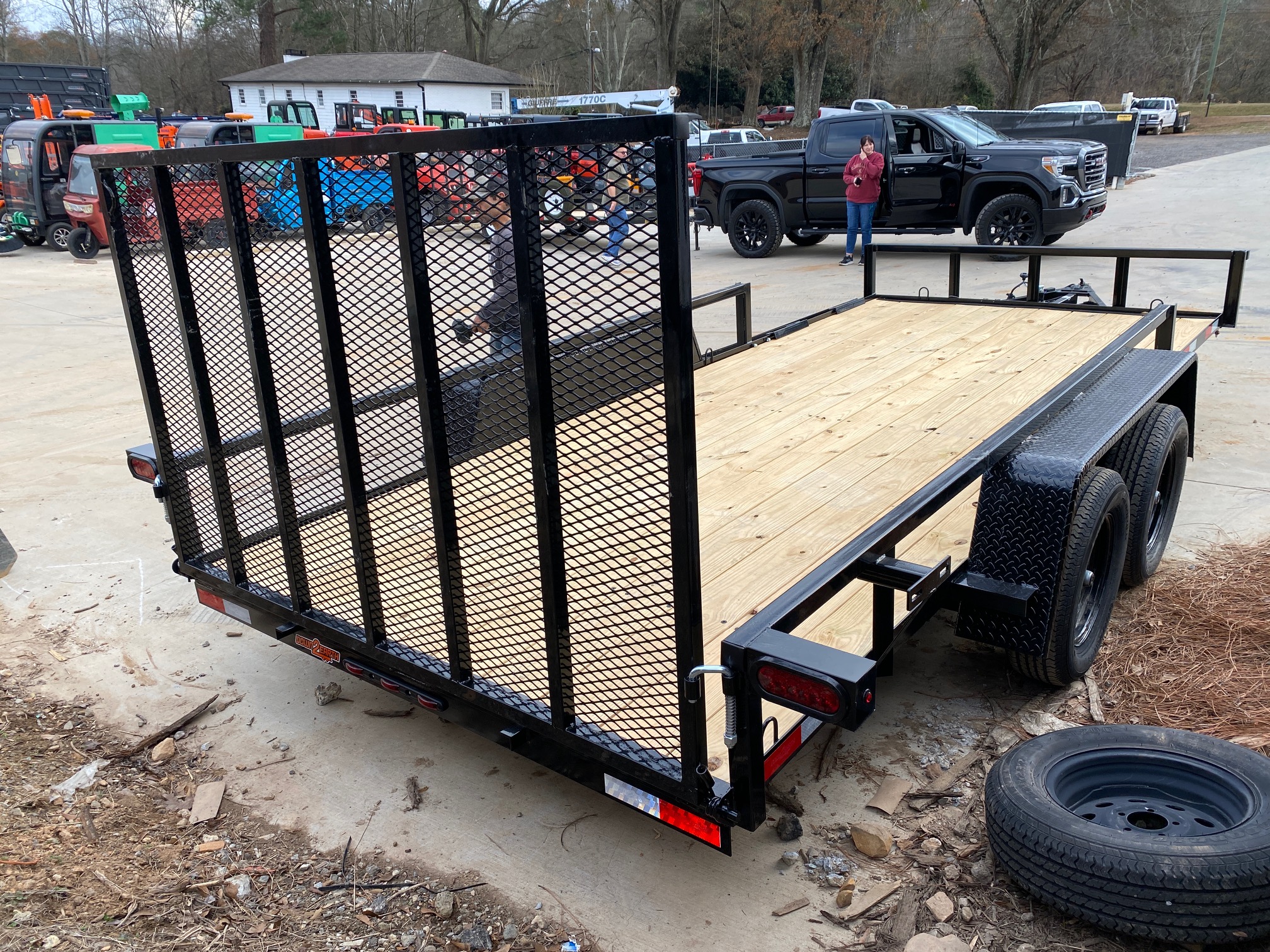 ##### Down To Earth 7x16 7000 lb, 7k Tandem Axle Landscape Utility Trailer with reinforced mesh gate and ATV side ramps.