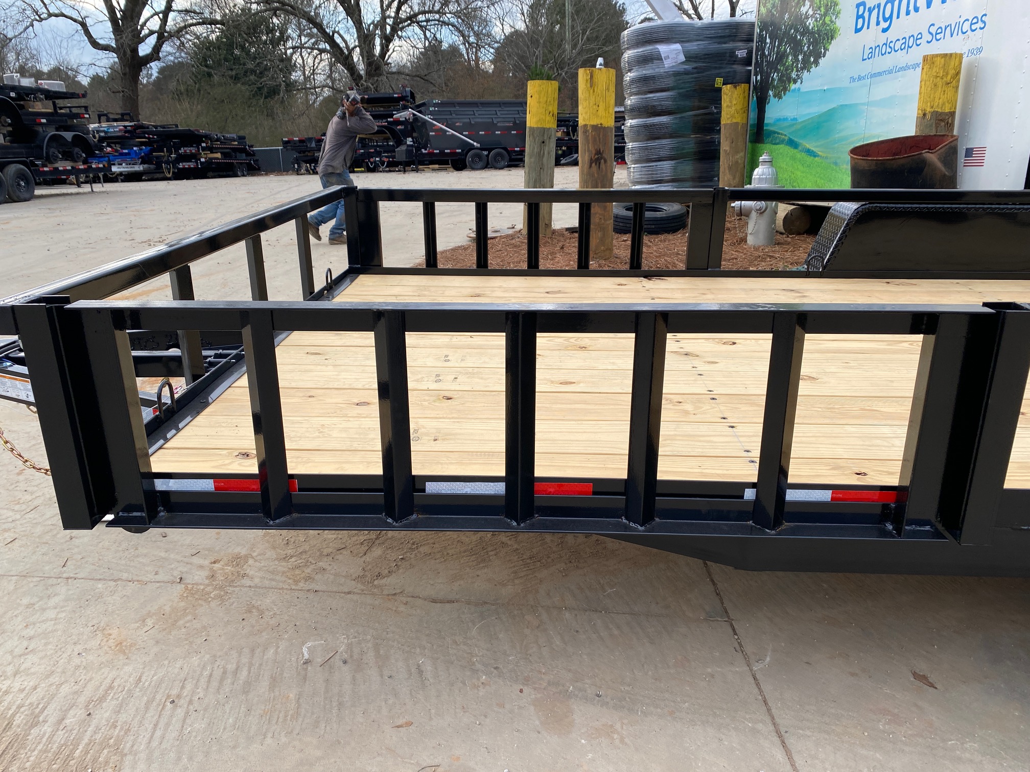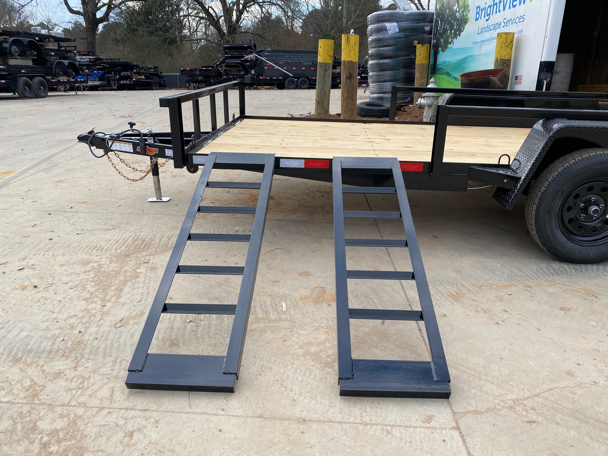 ##### We keep utility trailers in stock from 5x8 single axle up to 7x16 tandem axle. We stock regular rail, 24" mesh sides and these removeable side rail/ramp trailers in most sizes.