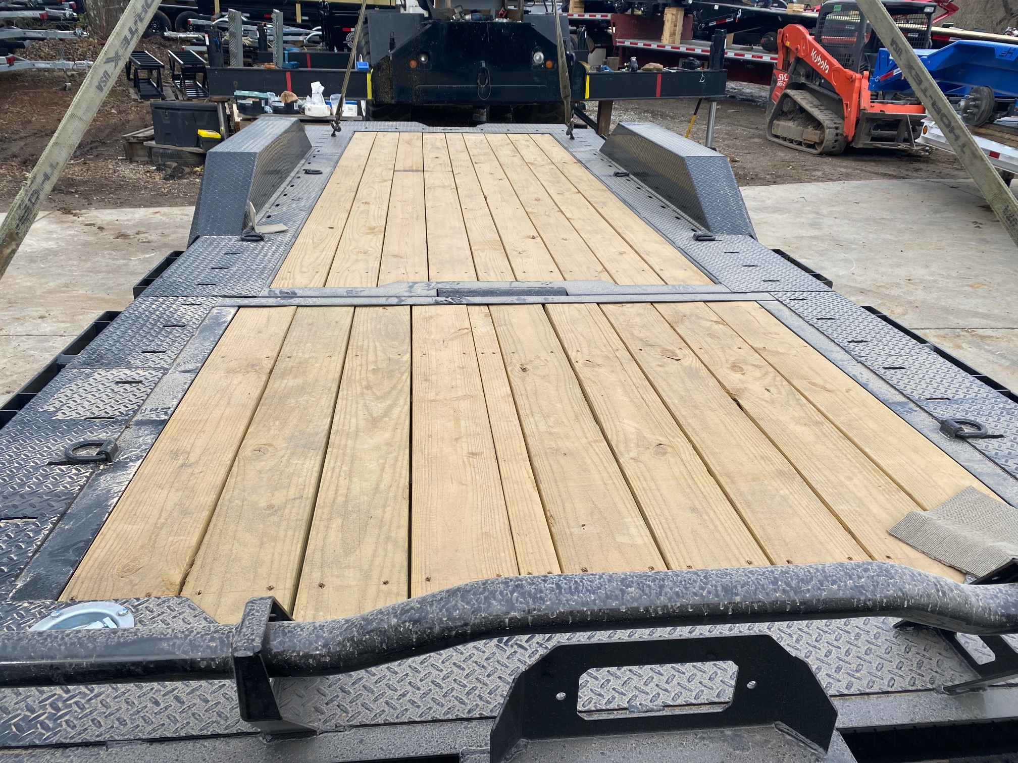 The Horizon ETZ 8.5x22 16K Tilt Deck is built for operators who demand convenience, strength, and loading efficiency. The 16-foot gravity tilt deck eliminates the need for ramps—making it easy to load skid steers, forklifts, tractors, and low-clearance equipment. The lockout valve allows controlled operation to match your load needs.