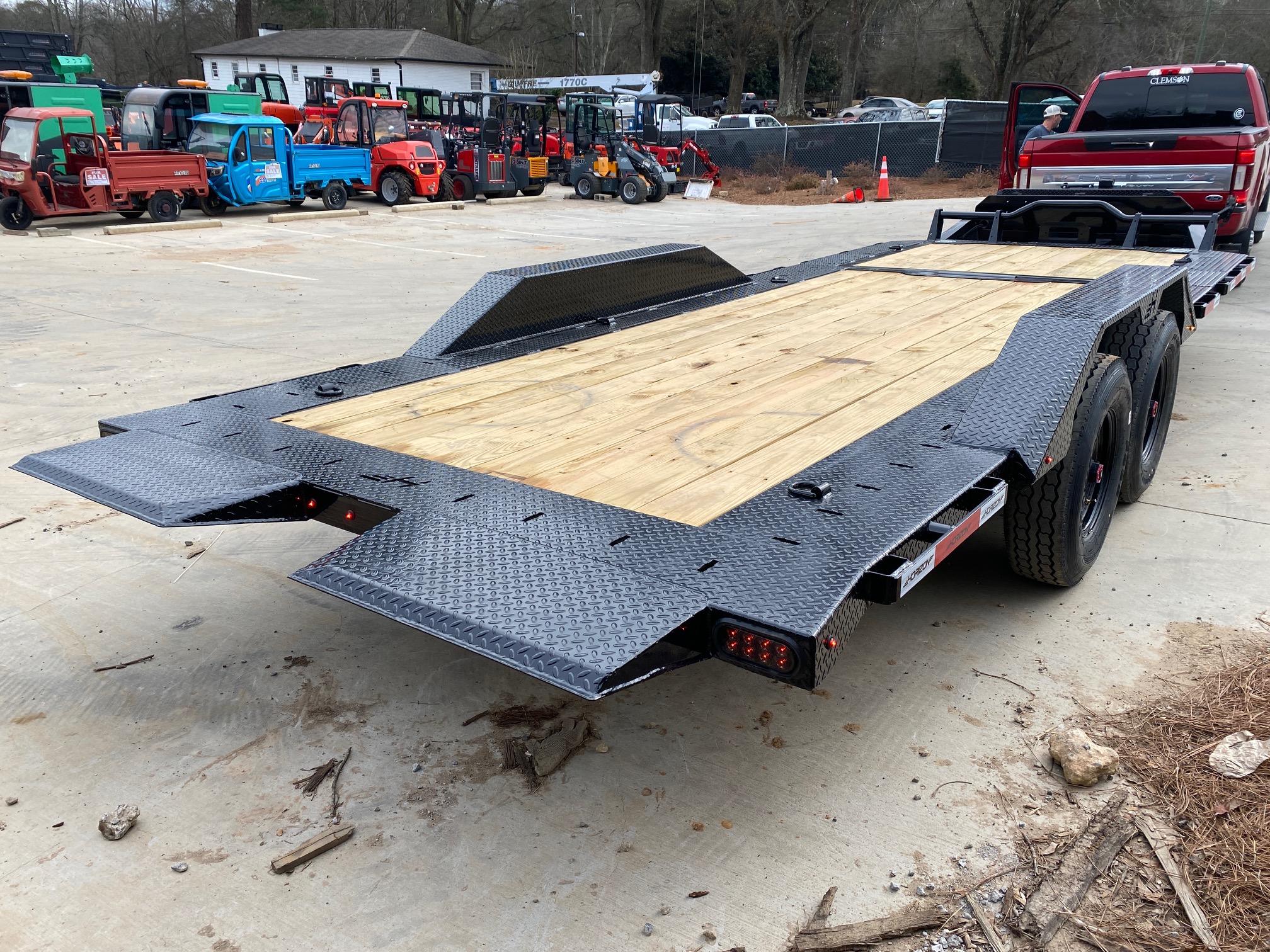 With drive-over fenders, you gain a full 102” loading width, perfect for wide equipment or dually trucks. The front toolbox + winch plate make it recovery-ready right out of the gate.