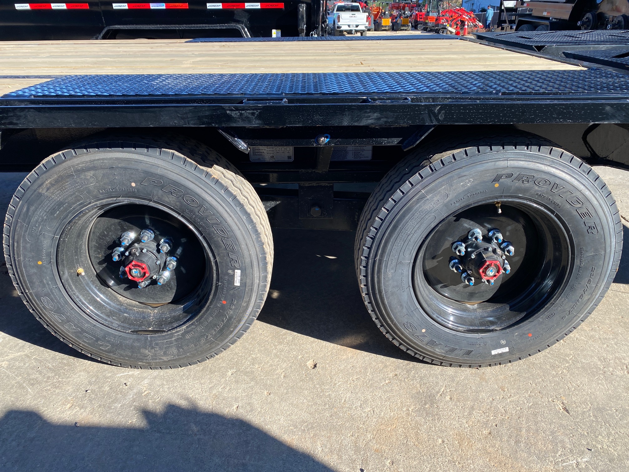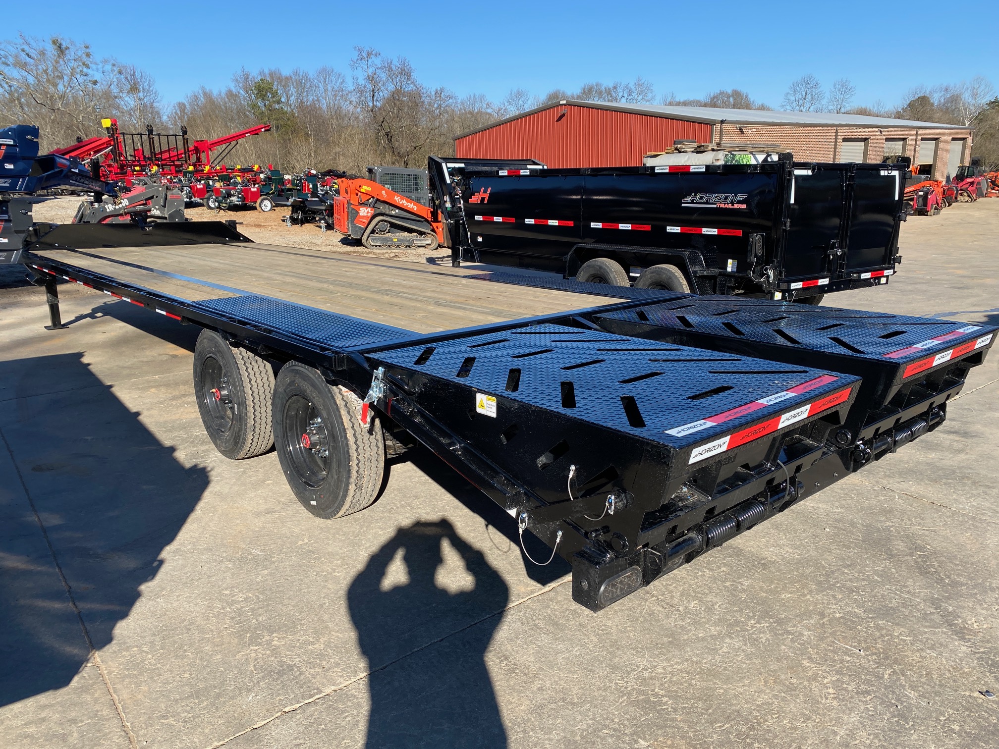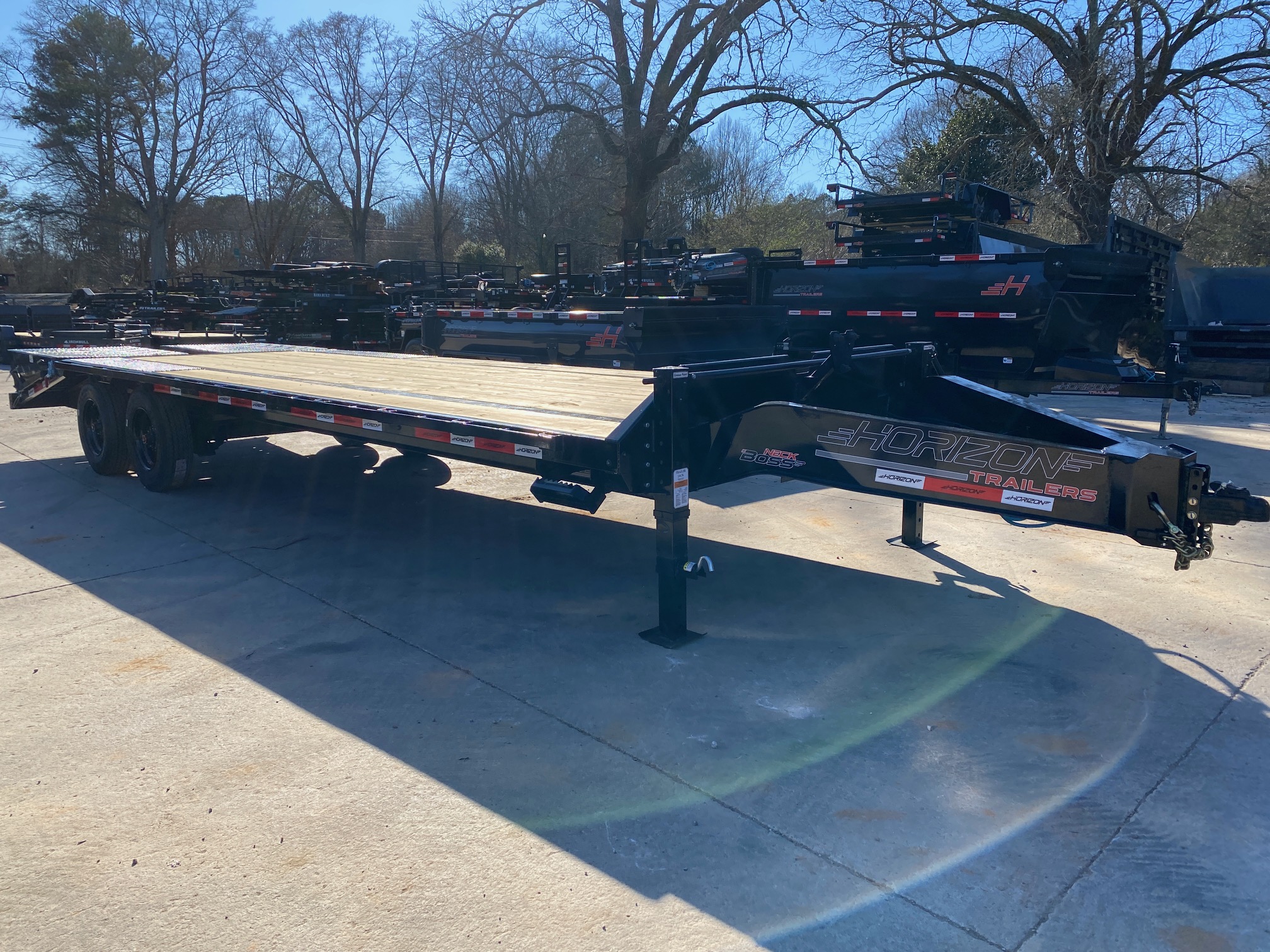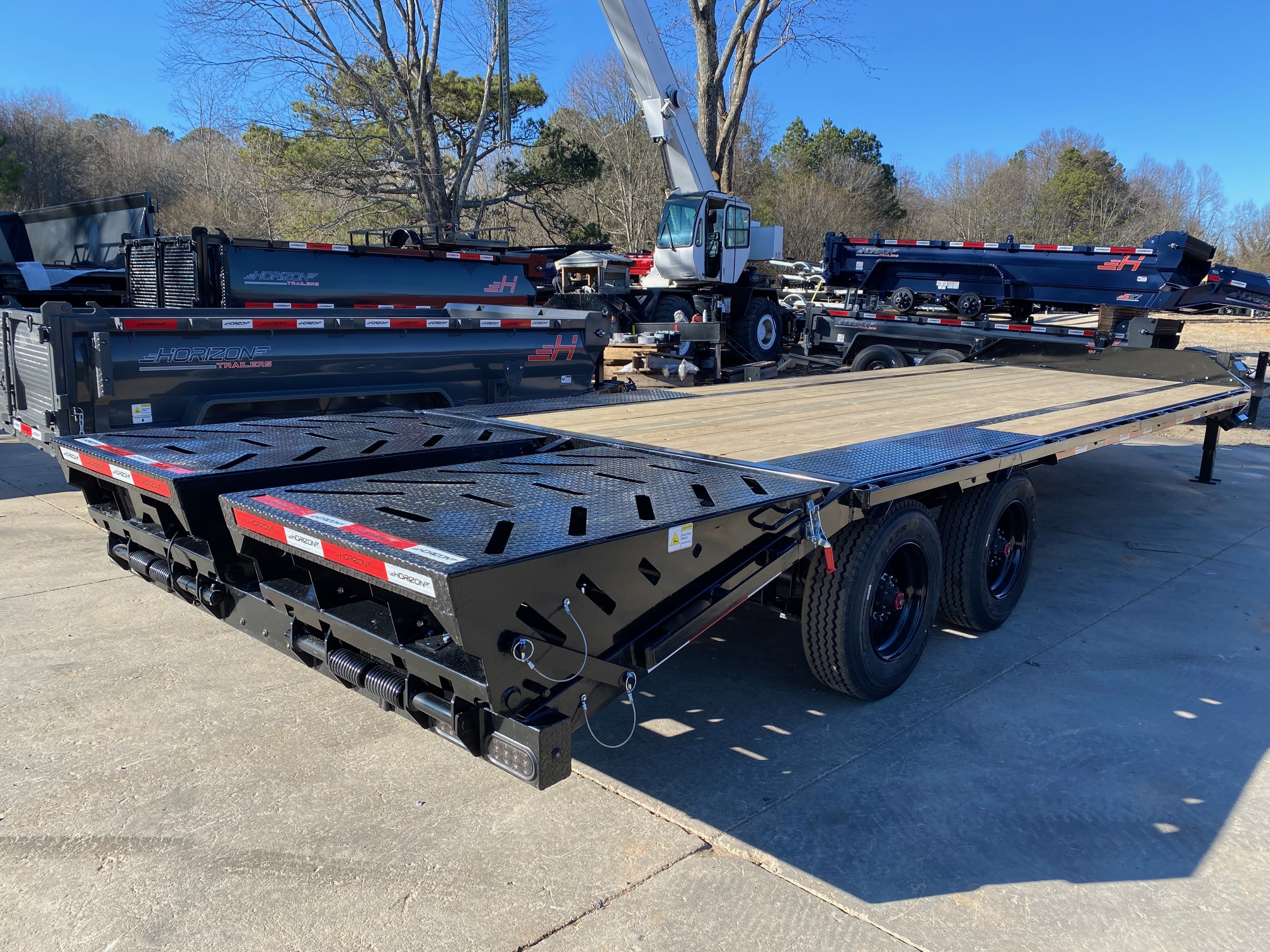 This Horizon Trailer offers premium quality, at a phenomenal price point, equipped with Heavy duty Mountain Ramps and a bridged frame that keeps your trailer stiff and light, you also get a 22/25k rating with just 4 wheels! This comes with Super Single 10k Axles and 18ply tires with solid steel rims. You dont have to worry about DOT ask us about DeRating your trailer to keep you legal as a noncdl driver on the road.