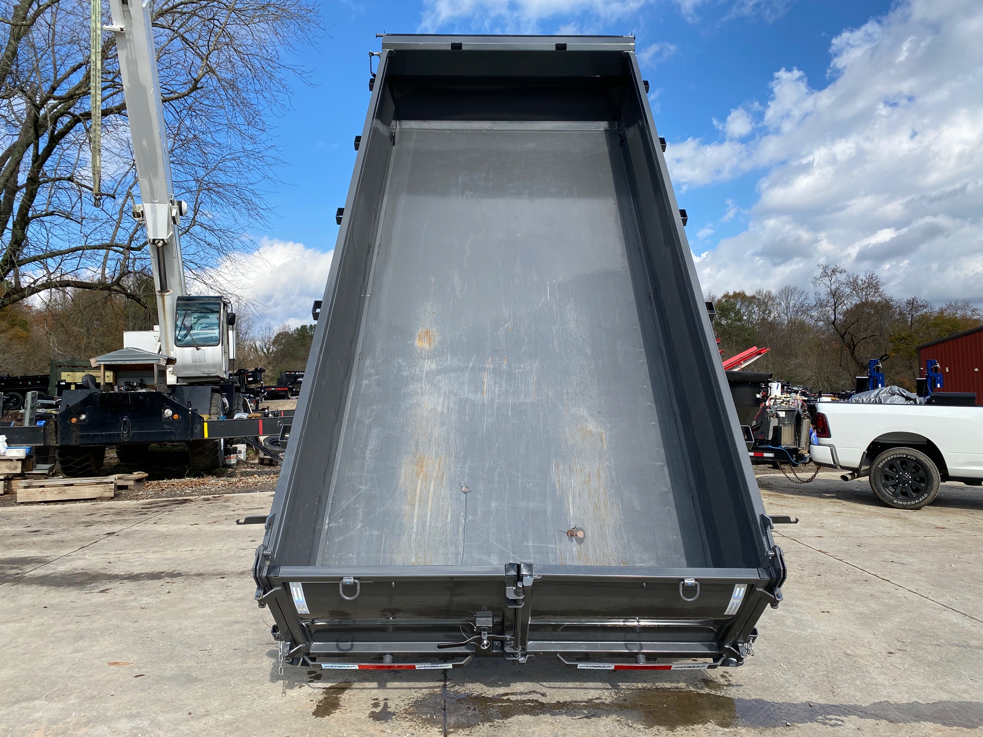 The scissor hoist provides stable, powerful dumping performance. With a 10K jack, 14-ply tires, rear jack stands, ramps, and a tarp included, this demo unit is fully equipped and ready for heavy-duty work. Finished in Ash Grey, it’s both rugged and sharp-looking.