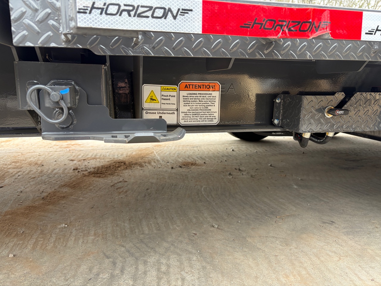 The Horizon 8.5x24 22K Gooseneck Tilt Trailer is built for hauling wide, heavy equipment with easy loading and premium features. With 10K super single axles, hydraulic dampening tilt, and drive-over fenders, this trailer is designed for efficiency, stability, and durability on the job.