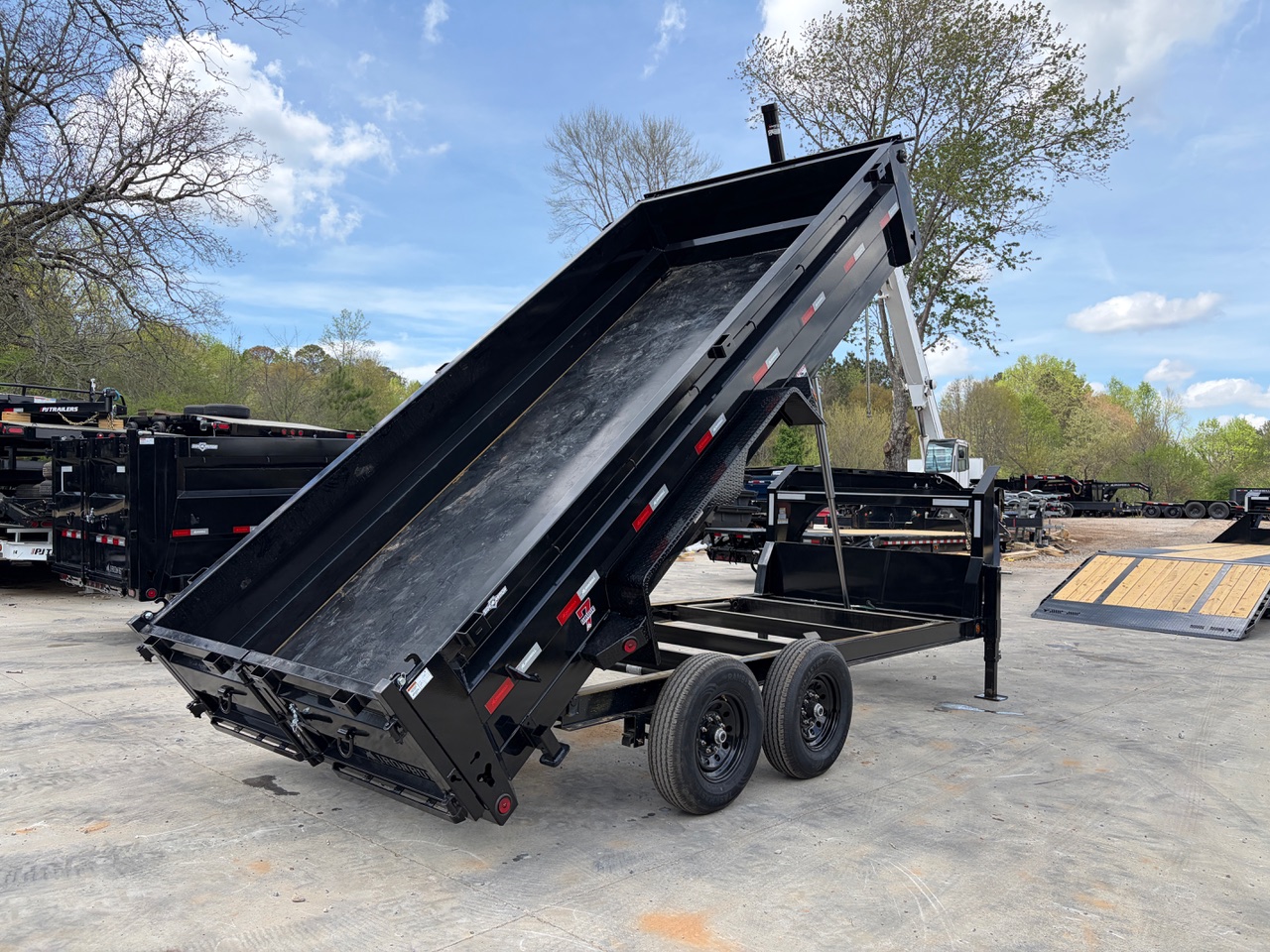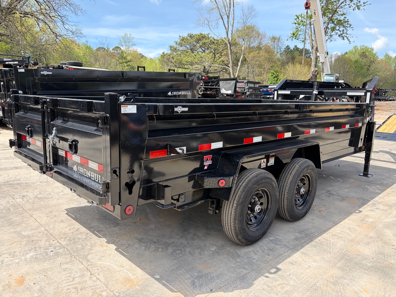 - 7x16 Goose 14k: 7 feet by 16 feet, Goose-neck style, with a 14,000-pound weight capacity.
