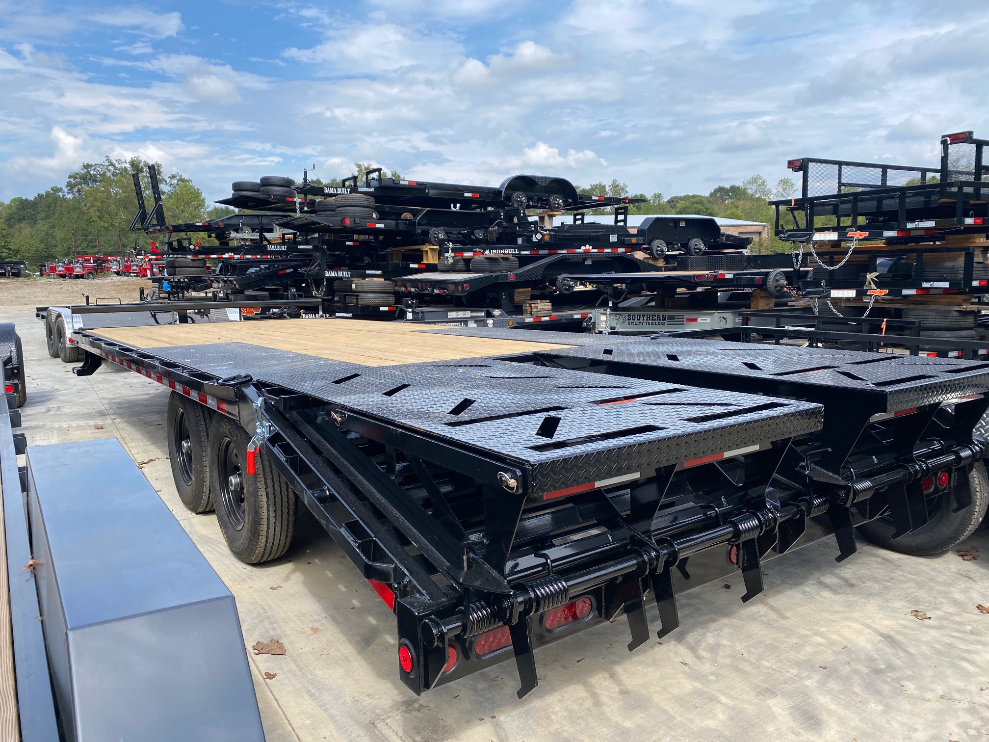 **We stock Dump Trailers, Utility Trailers, Equipment Trailers, Car Hauling Trailers, Deckover Trailers, Roll Offs, Hotshot/Freight Flatbeds.**
