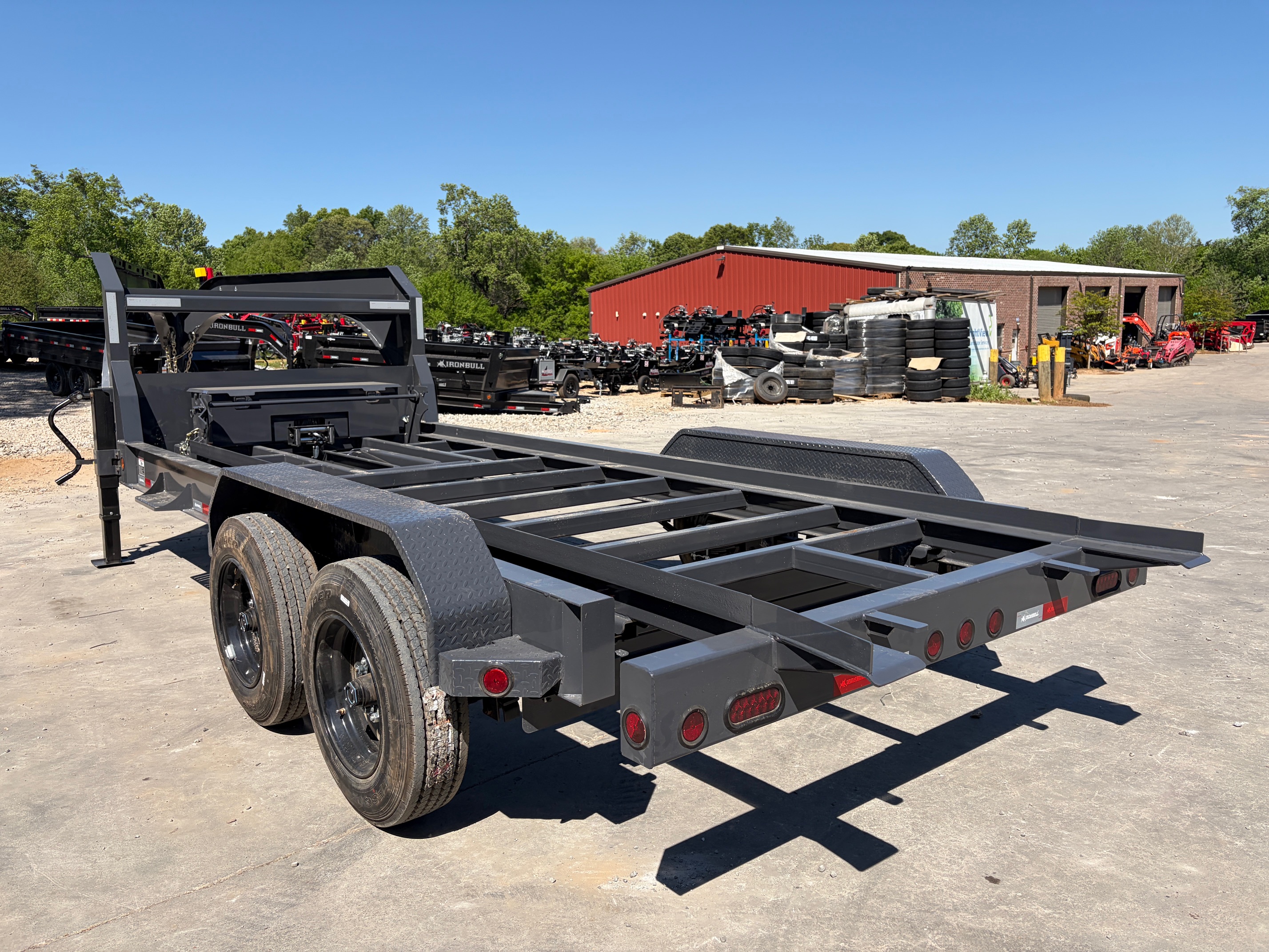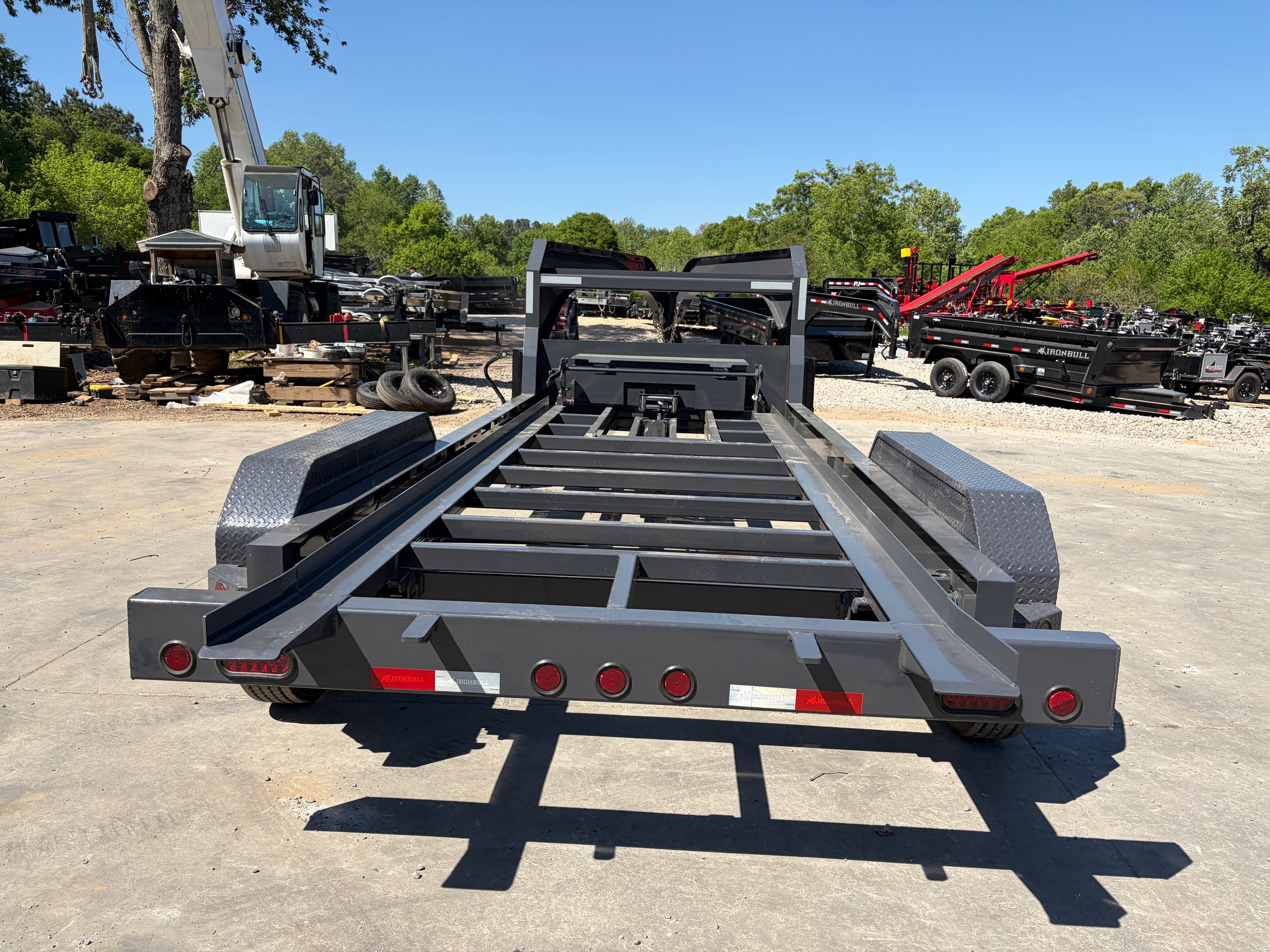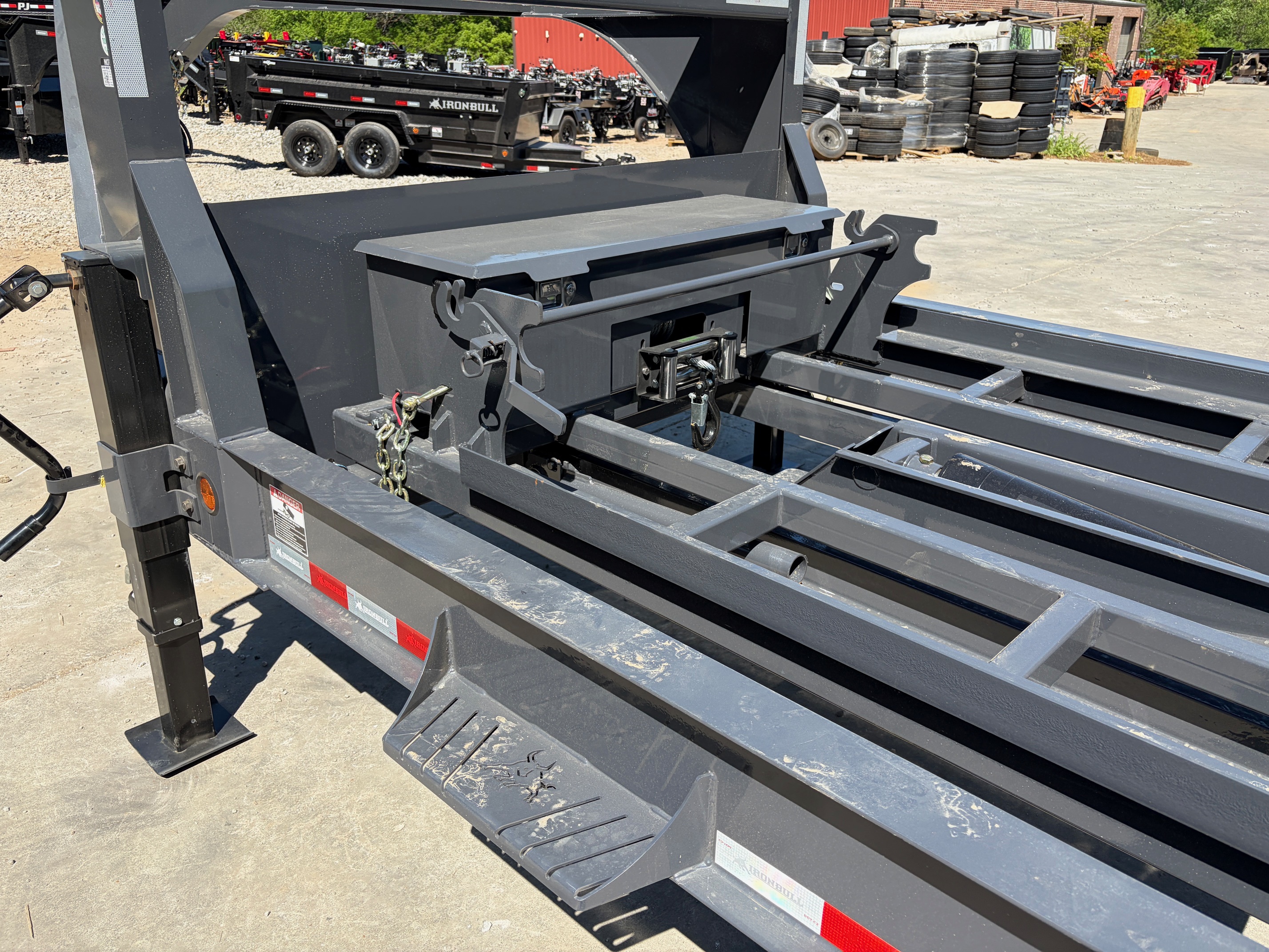 Heavy-duty Iron Bull DBG roll off trailer built for serious dumpster and jobsite work. Featuring the upgraded engineered neck design, this trailer offers increased strength and improved weight distribution for demanding hauling applications.