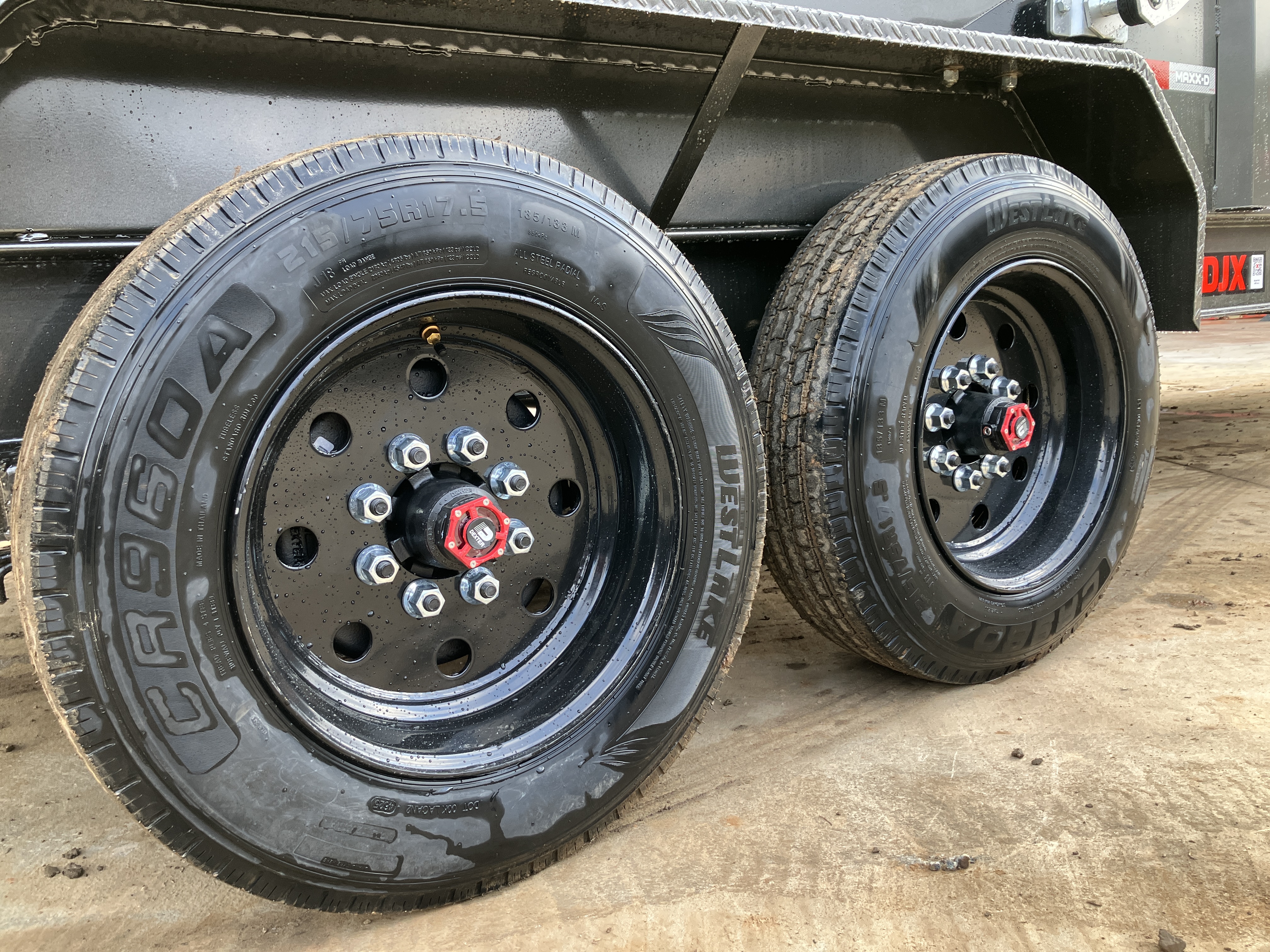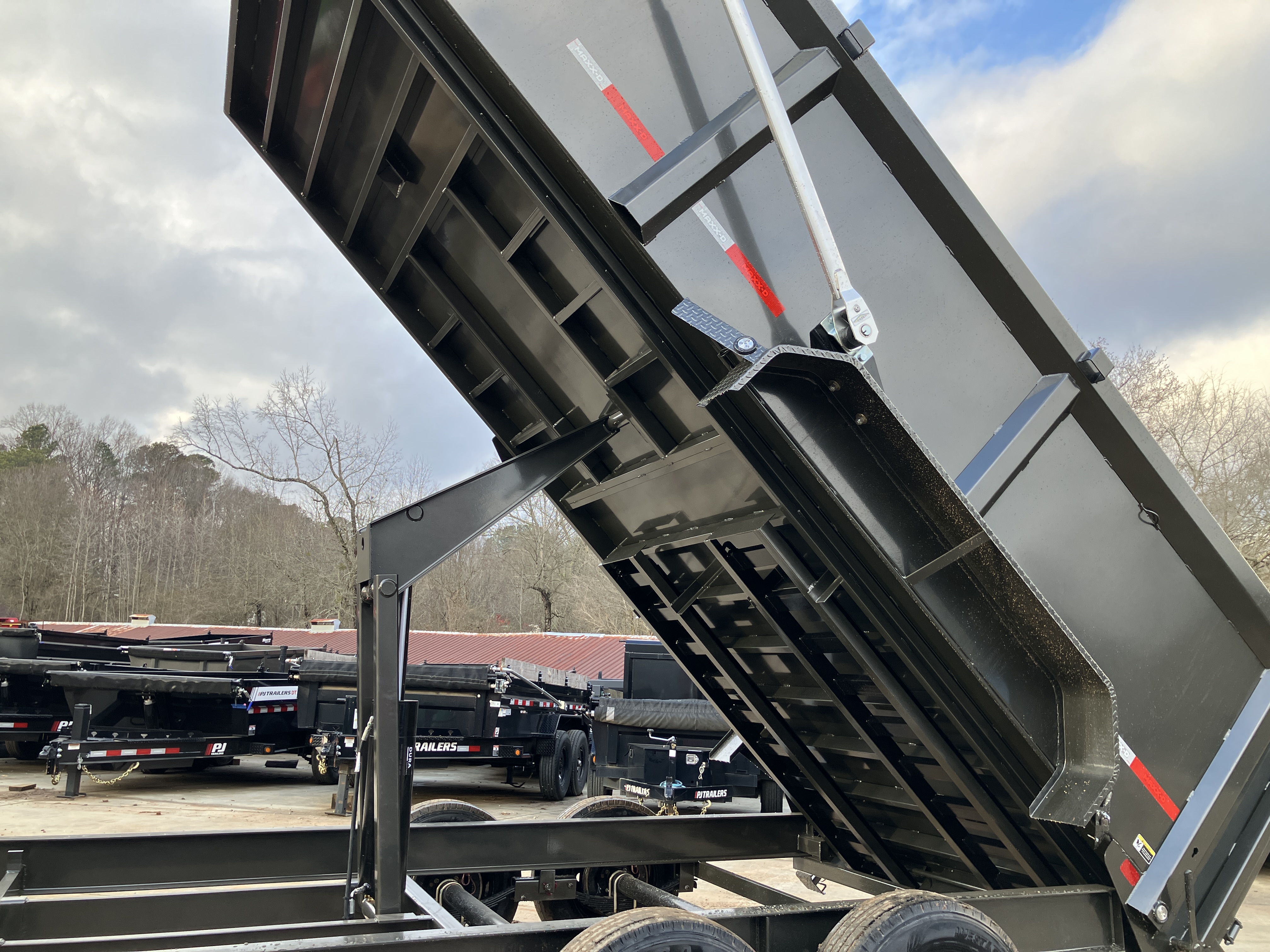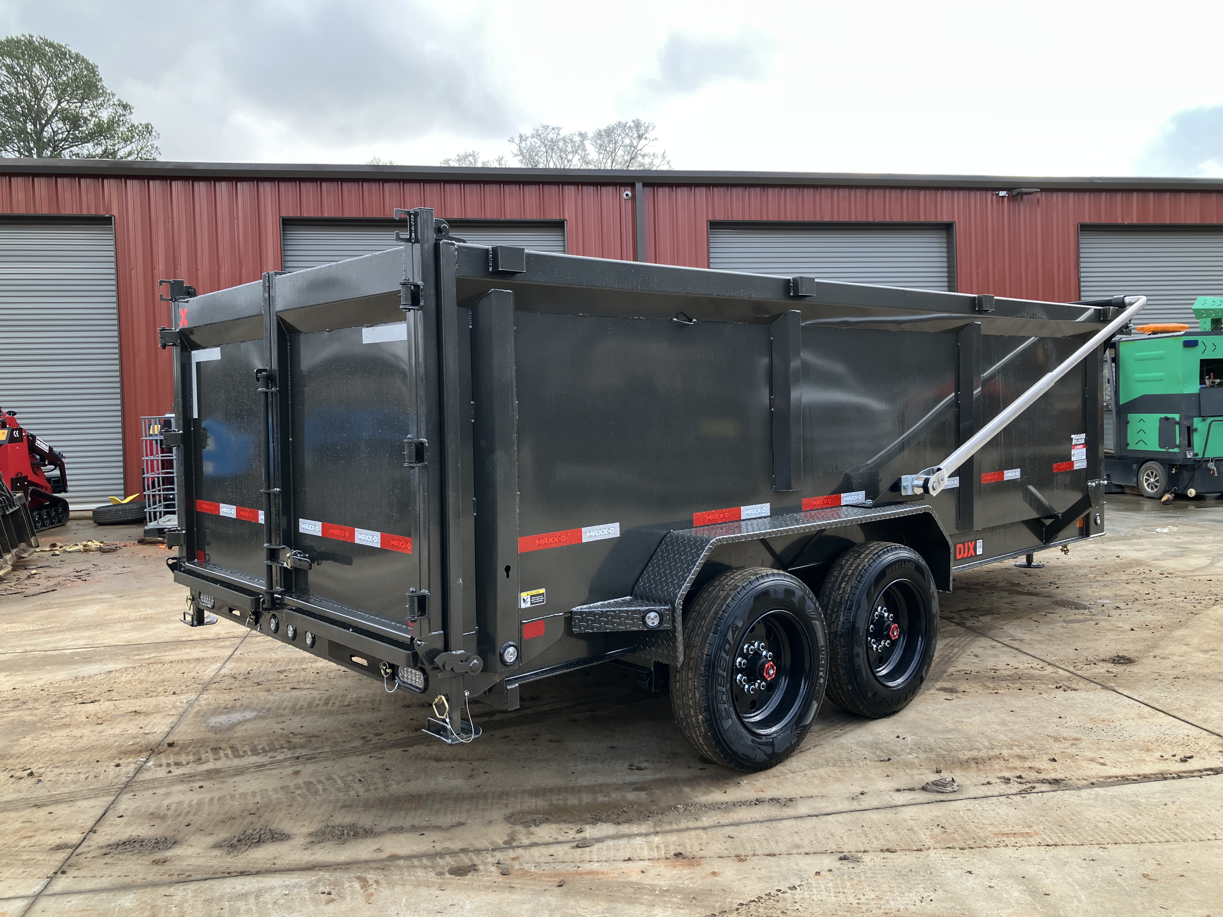 The 6” scissor hoist provides strong, stable lifting, while the wireless remote, hydraulic jack, and automatic tarp system add efficiency and convenience on the job site. Finished with 16-ply tires, dual 8K axles, and an oversized toolbox, this DJX is designed for serious commercial use where reliability matters.