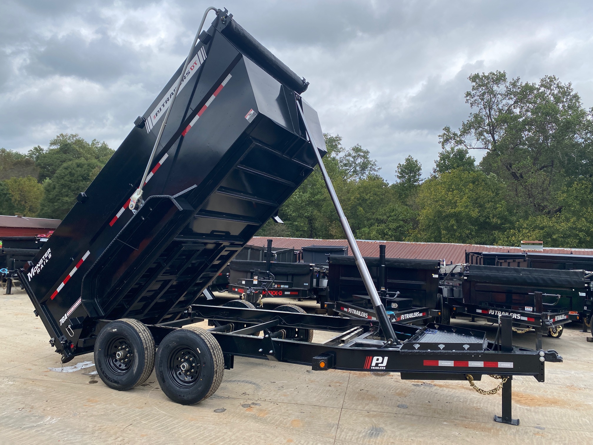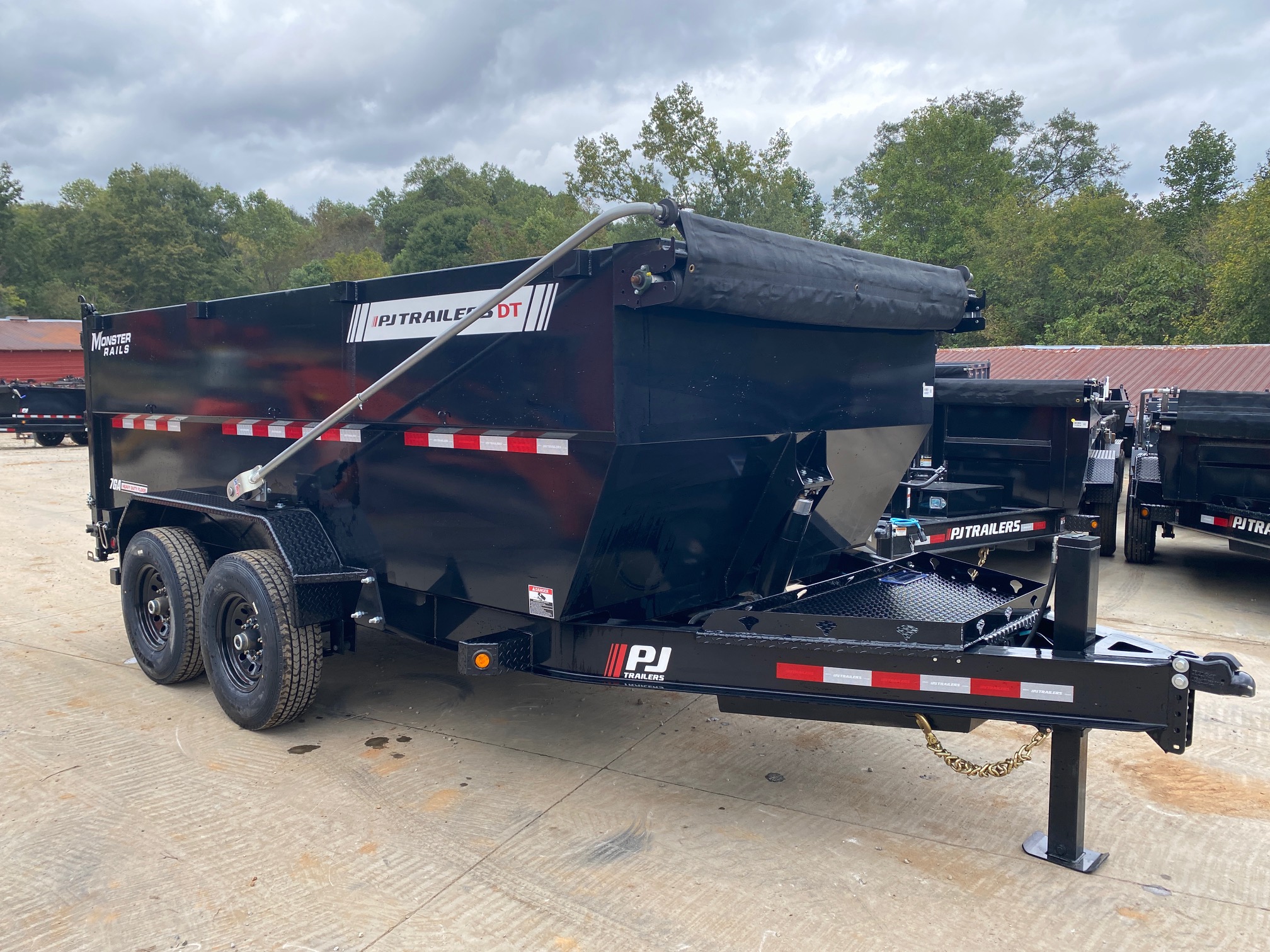 2026 PJ Trailers 7x14 14K Dump Trailer – 4’ Sides, TELE Hoist, Hydraulic Jack, Monster Rails & Toolbox, Auto Tarp - D14K7144THP-VYGR