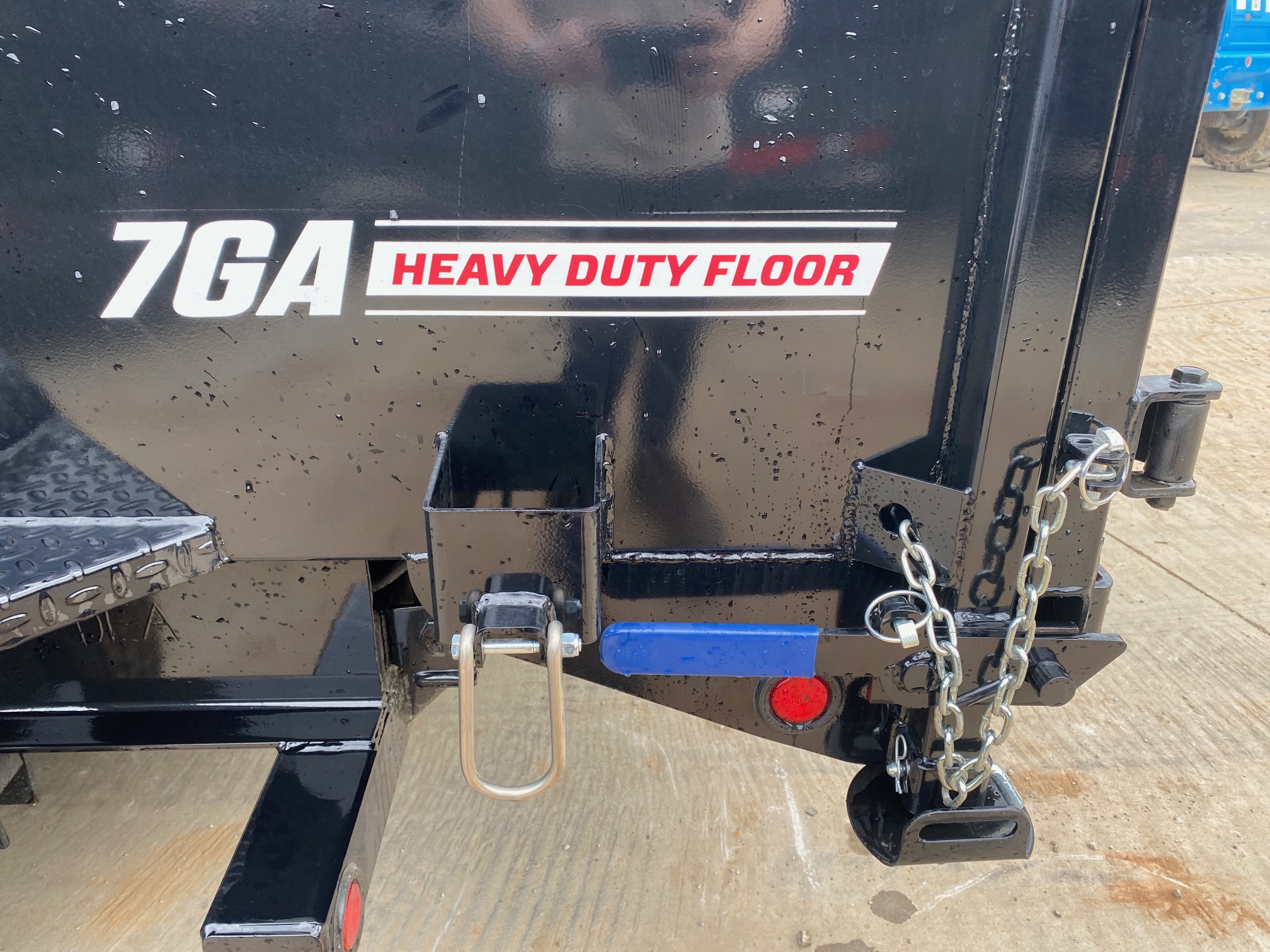 7x14 14K Dump Trailer – 4’ Sides, TELE Hoist, Hydraulic Jack, Monster Rails & Toolbox, Auto Tarp