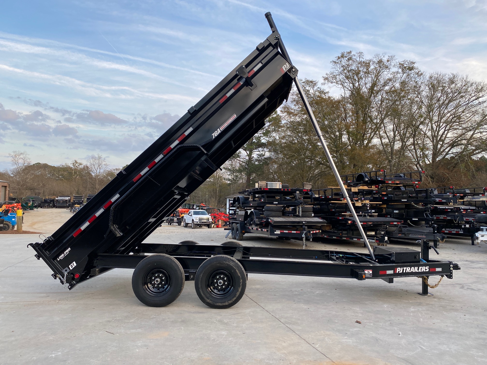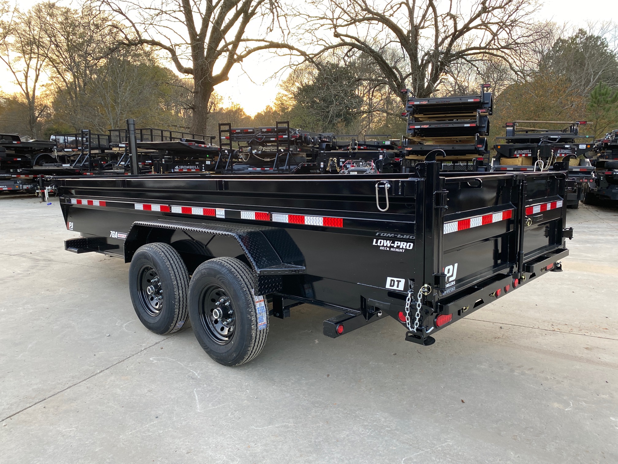 PJ Professional Grade Low Profile Dump Trailer, two 7k E- Z lube Brake Axles with 5 year axle warranty