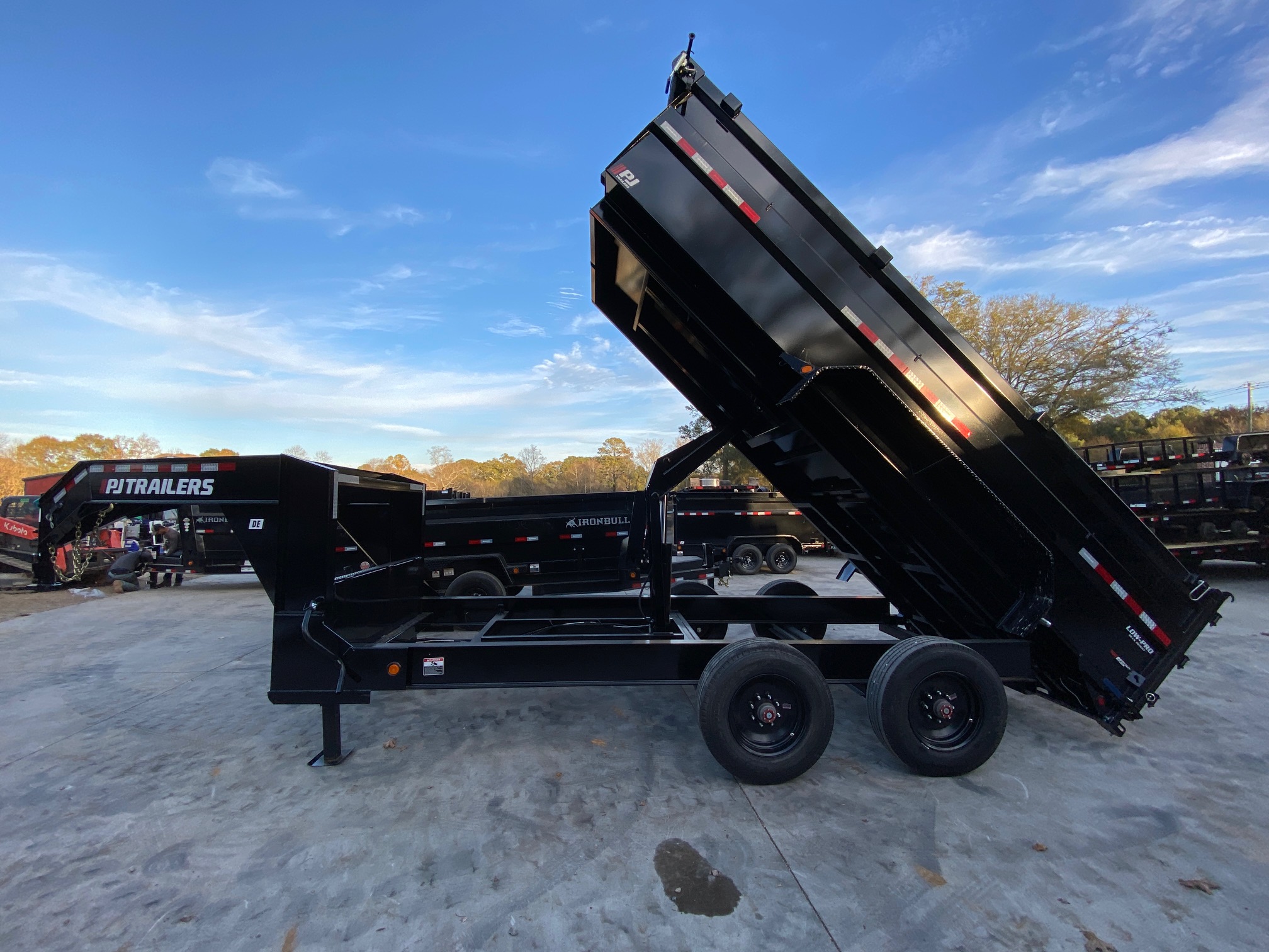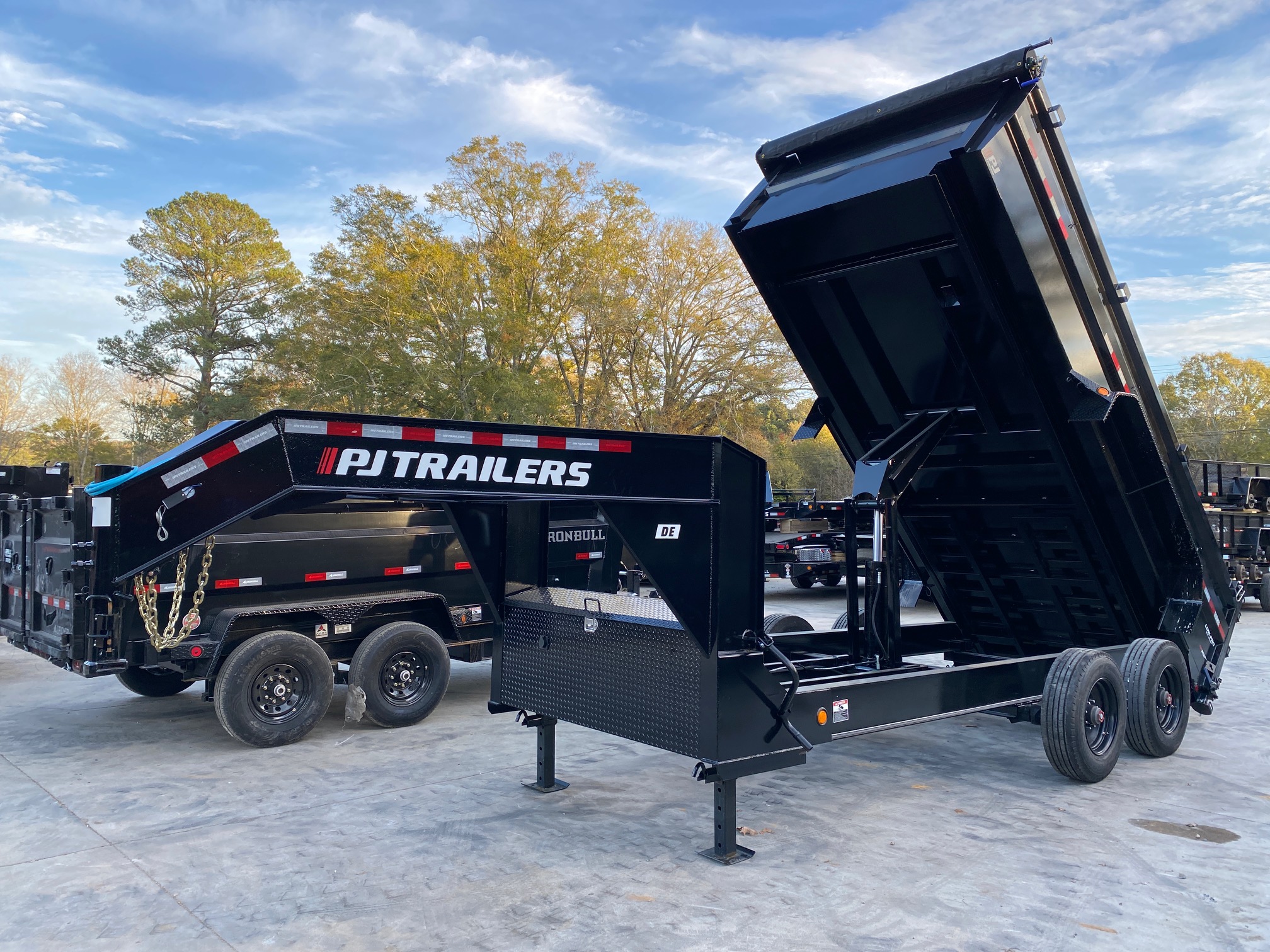 ### PJ DE SERIES IS THE STEALTHY DUAL TANDEM DUMP WITH SAME AXLE RATING AS DUAL TANDEM BUT ONLY FOUR 18PLY TIRES - 22K GVW CAN BE DE-RATED TO UNDER CDL USE.