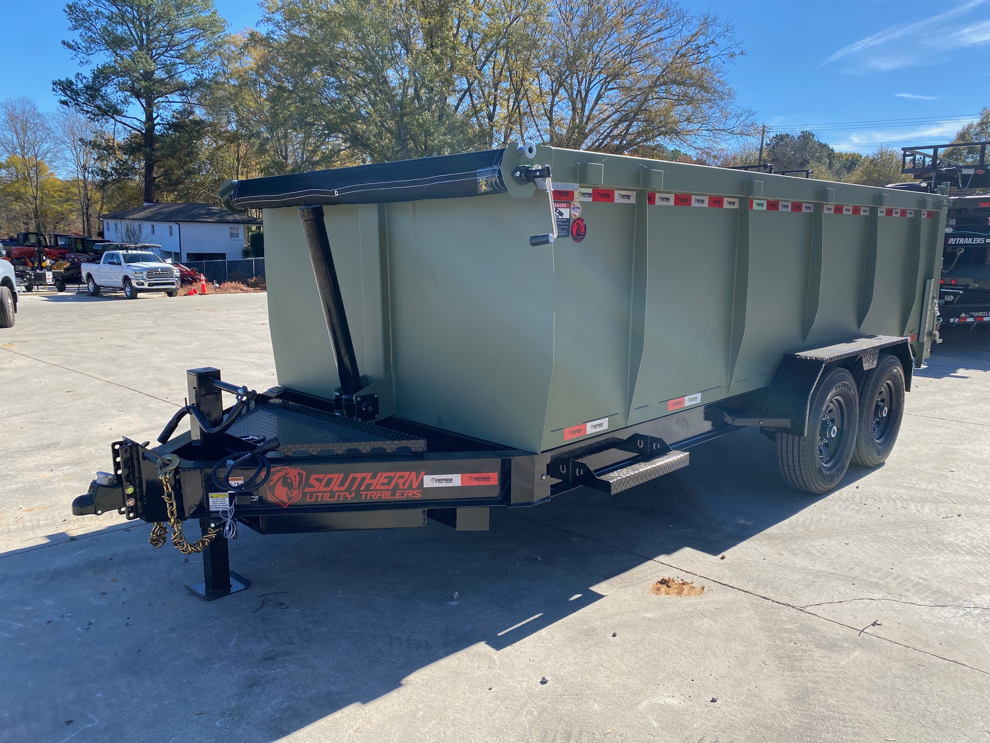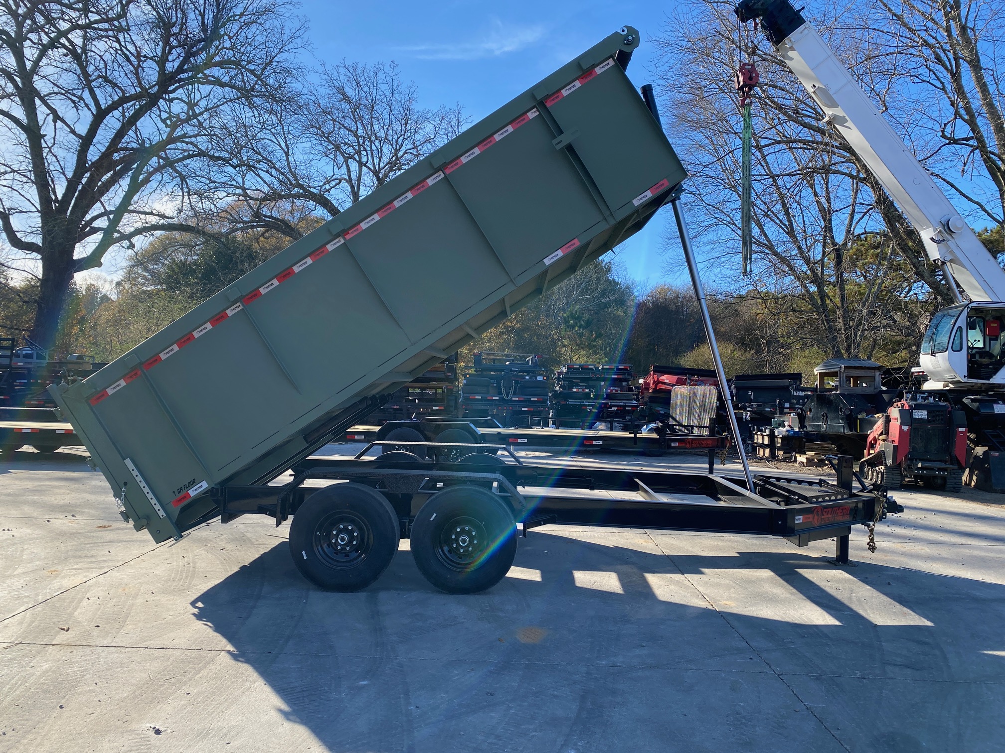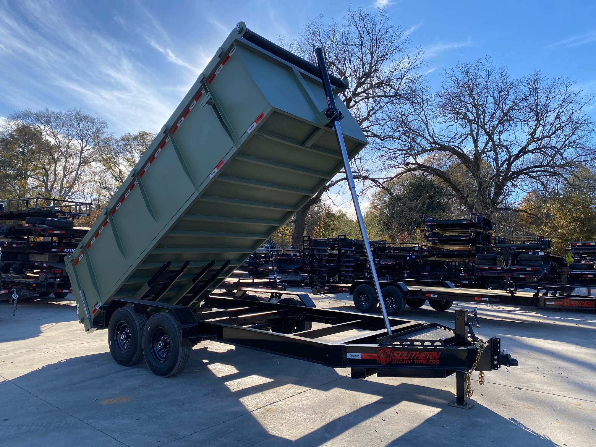 2026 Southern Utility Trailers 7x16 14K Dump Trailer – 4’ Sides, TELE Hoist, 7-Gauge Floor (Moss Green) - D14K7164TS