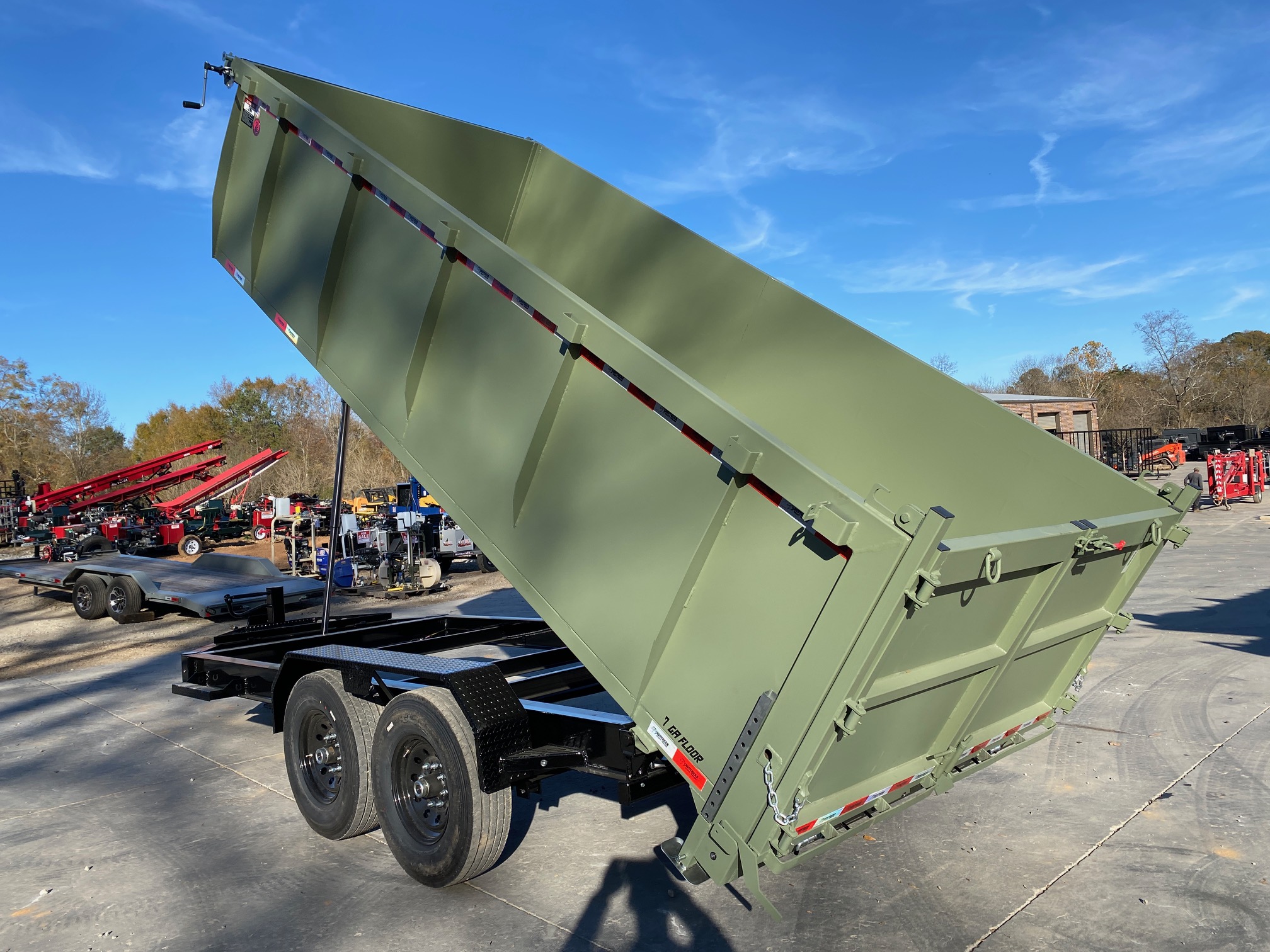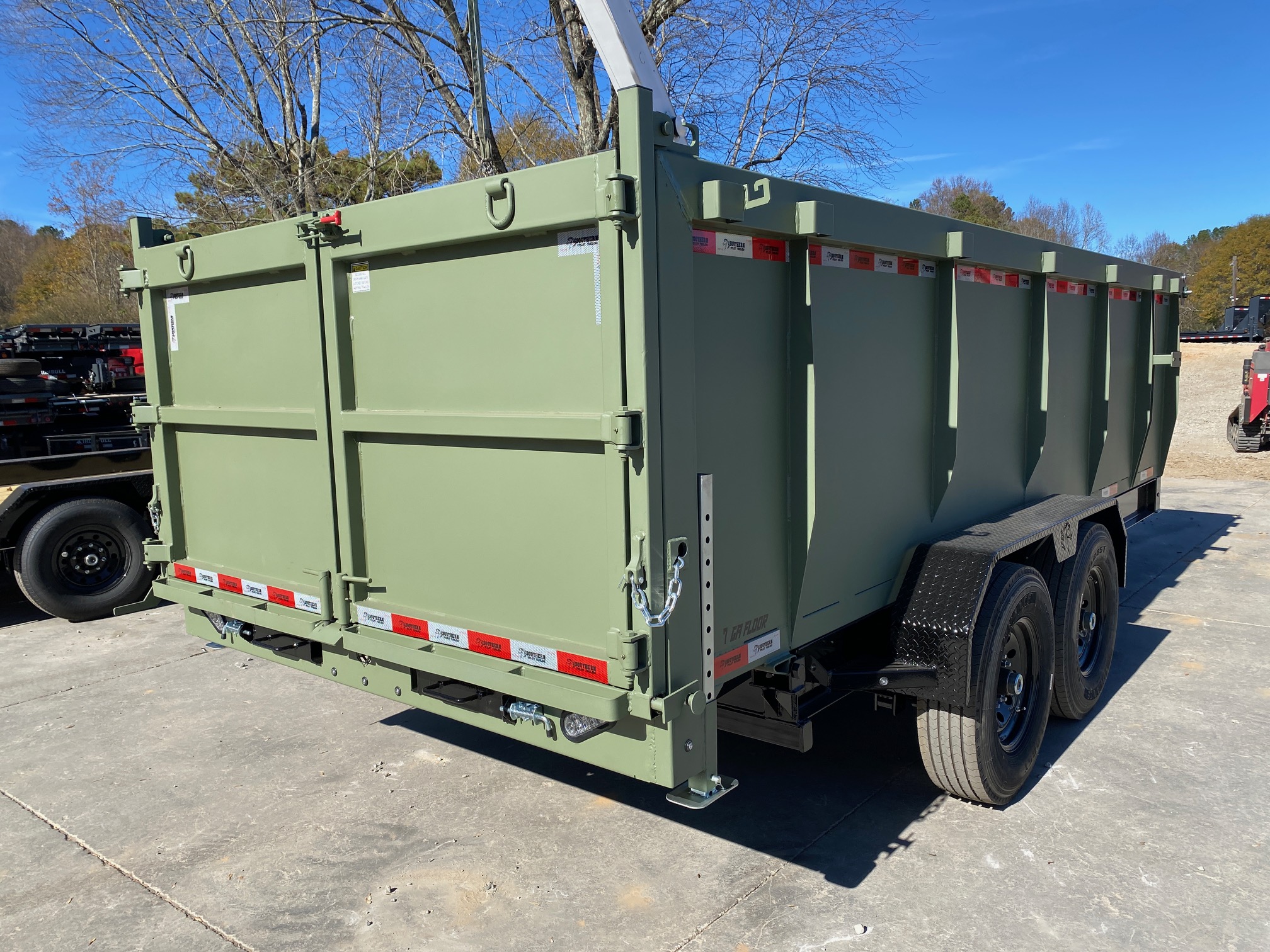7x16 14K Dump Trailer – 4’ Sides, TELE Hoist, 7-Gauge Floor (Moss Green)