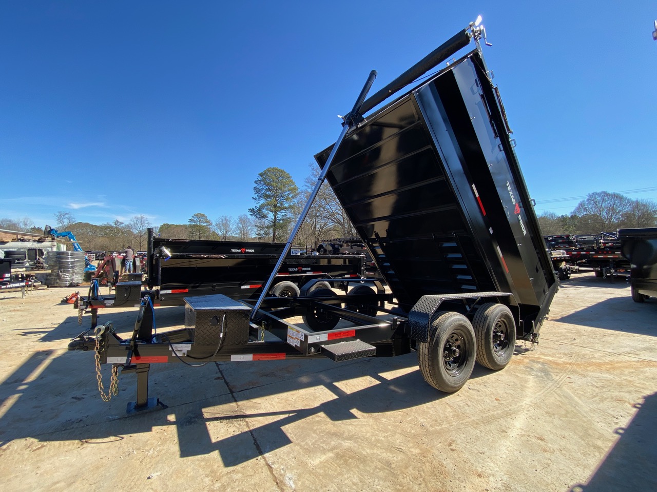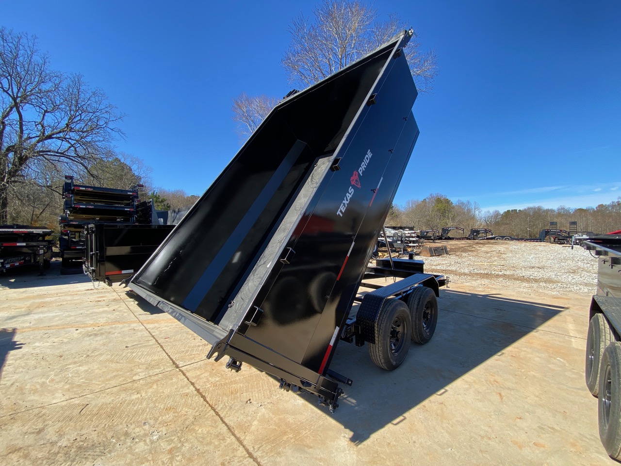 The Texas Pride 7x16 14K Dump Trailer delivers dependable performance with heavy-duty construction and contractor-ready features. Built on a 6” channel frame with a 7-gauge steel floor, this trailer is engineered to handle gravel, debris, and heavy materials with confidence.