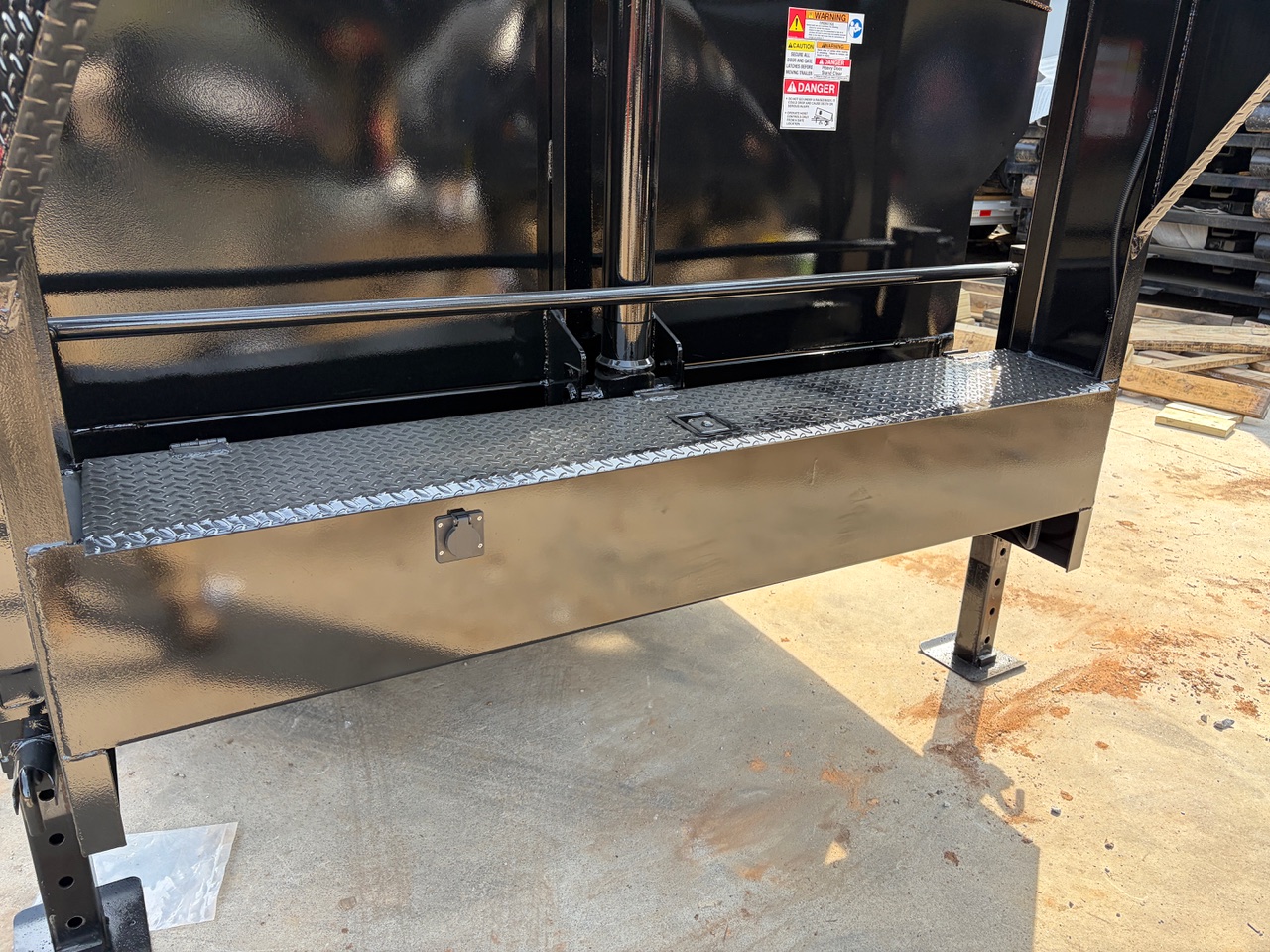 The gooseneck design improves towing stability and weight distribution, while the telescopic hoist provides stronger lifting power and higher dump angles than traditional scissor hoists.