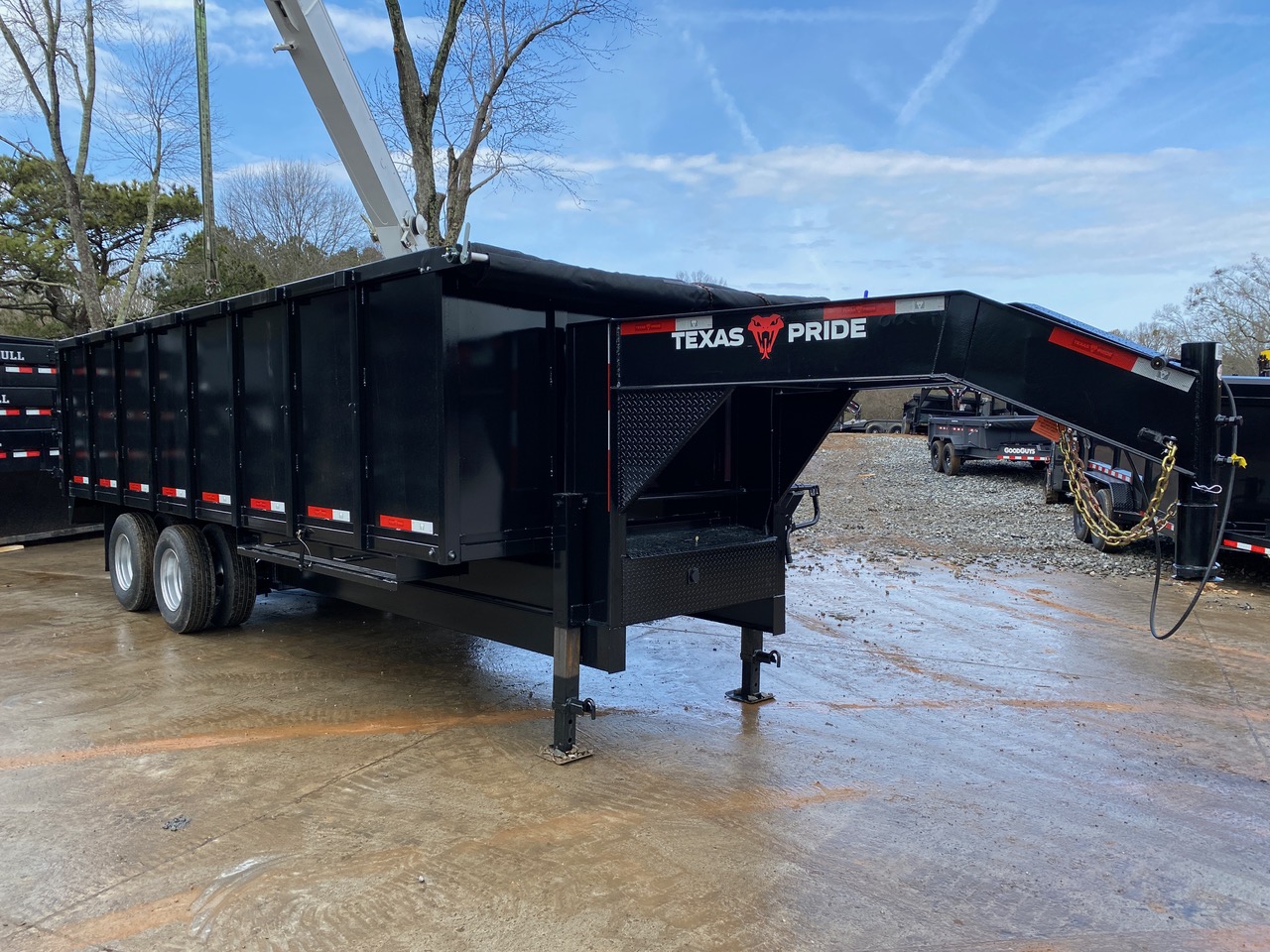 With included ramps and tarp system, this trailer is job-site ready and designed for contractors, fleet operators, and heavy-duty hauling applications. The gooseneck configuration provides improved stability and weight distribution, making it ideal for high-capacity hauling.