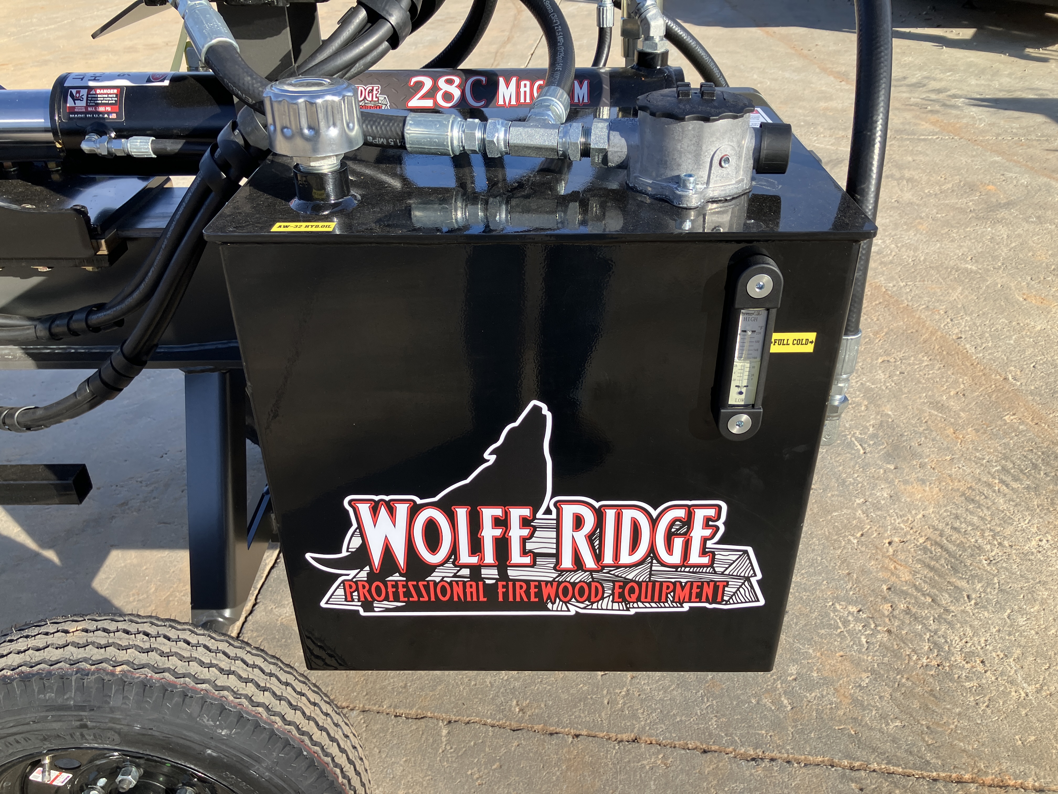 The Wolfe Ridge 28C Compact Commercial log splitters are high-powered machines that can easily split even the toughest logs with their Honda GX390 engine and 22 gallon per minute hydraulic pump. 28-ton splitting force for the 28C. Built to last, made in the USA, all Wolfe Ridge machines are produced with top-quality materials to ensure reliable performance, day in and day out.