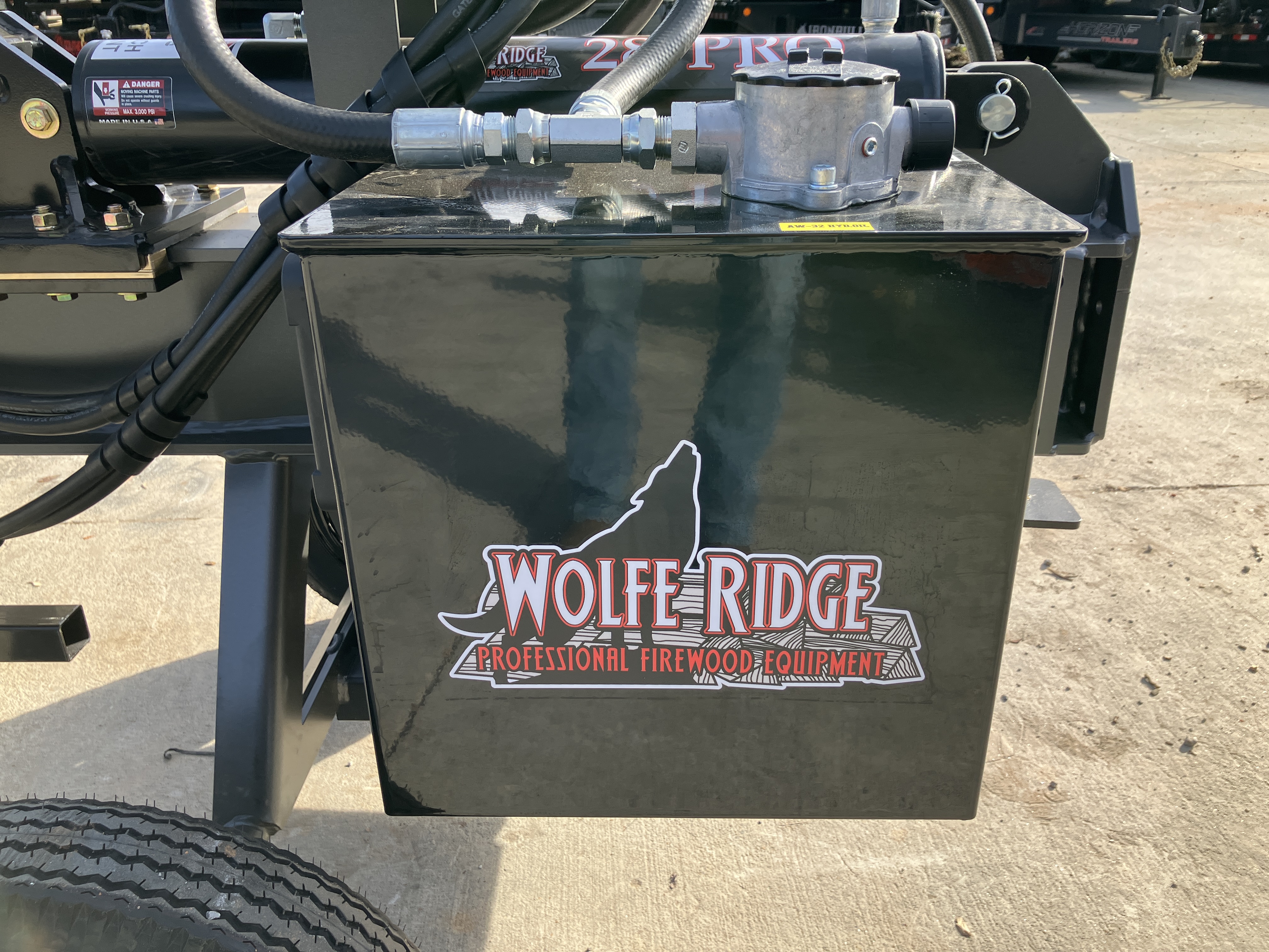 The 28 Pro is packed with high grade components and features while still being an affordable true commercial grade log splitter. With a Honda GX270 engine matched to a 16 gallon per minute hydraulic pump and heavy duty cylinder, this splitter has 28 tons of splitting force. Built to last, made in the USA, all Wolfe Ridge machines are produced with top-quality materials to ensure reliable performance, day in and day out.