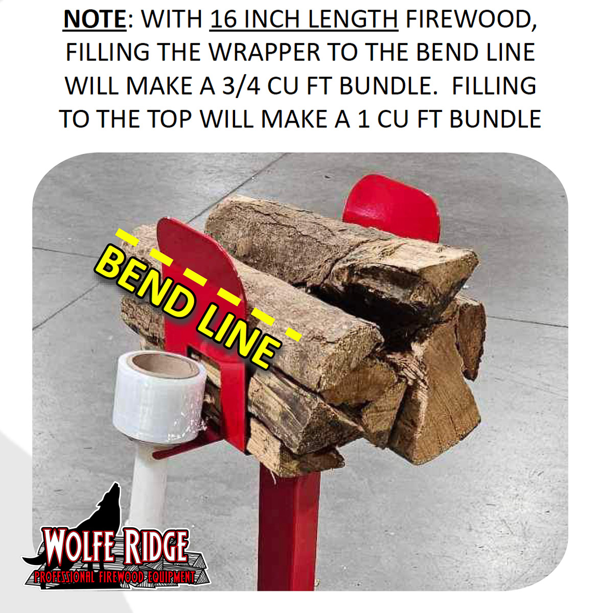 - Fill 16 inch length wood to the bend lines for 3/4 cubic foot bundles